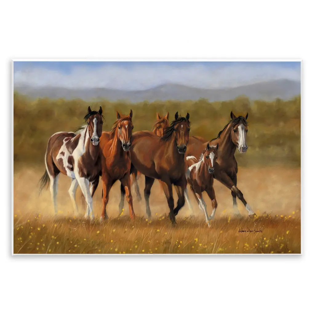 Our wall plaques start as high-quality lithograph prints mounted on durable 0.5-inch thick MDF wood. Each piece is hand finished and comes with a fresh layer of white foil on the sides to give it a crisp, clean look. Plaques arrive ready to hang without installation and come with removable plastic corners to keep them from damage in transit. Stupell Wall Art is made in the USA.Features: Dimensions: 15 x 0.5 x 10 InchesWall Plaque Product Sizes Include 15"x10" and 19"x13". All wall plaque products have a 0.5" Depth. Wall Art is Ready to Hang with Hardware Free Hanging. No installation required. For Easy Set Up Lean or Layer Artwork on Shelf or Against Wall.All of our wall plaques start off as high quality lithograph prints that are then mounted on durable 0.5 inch thick MDF wood. Each piece is hand finished and comes with a fresh layer of foil on the sides to give it a crisp clean look. Made In USA.Artwork Relates To: Animal, Horse, Mammal, Stallion, Colt Horse, Andalusian Horse, Foal, Mare, LandscapeDesign by Victoria Schultz