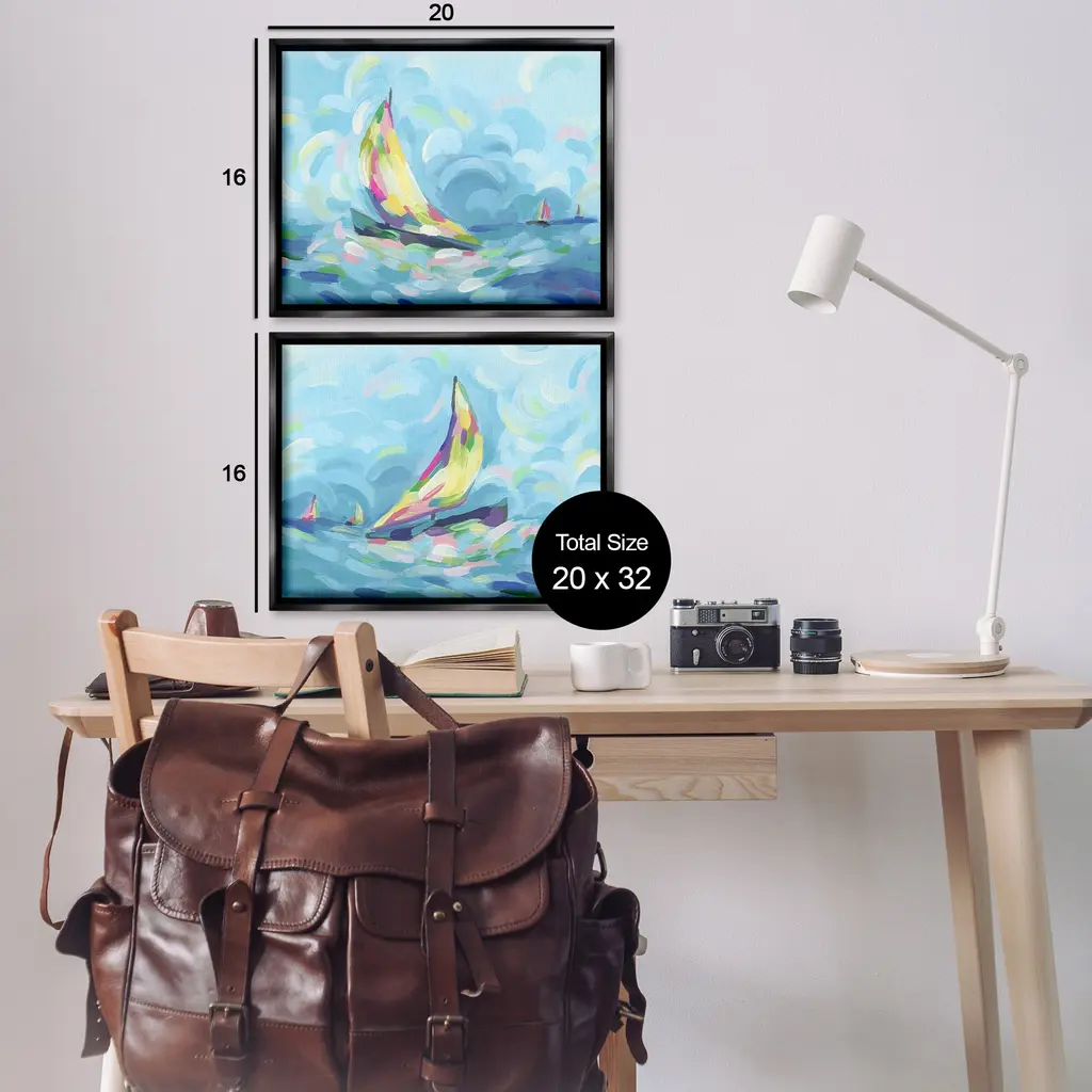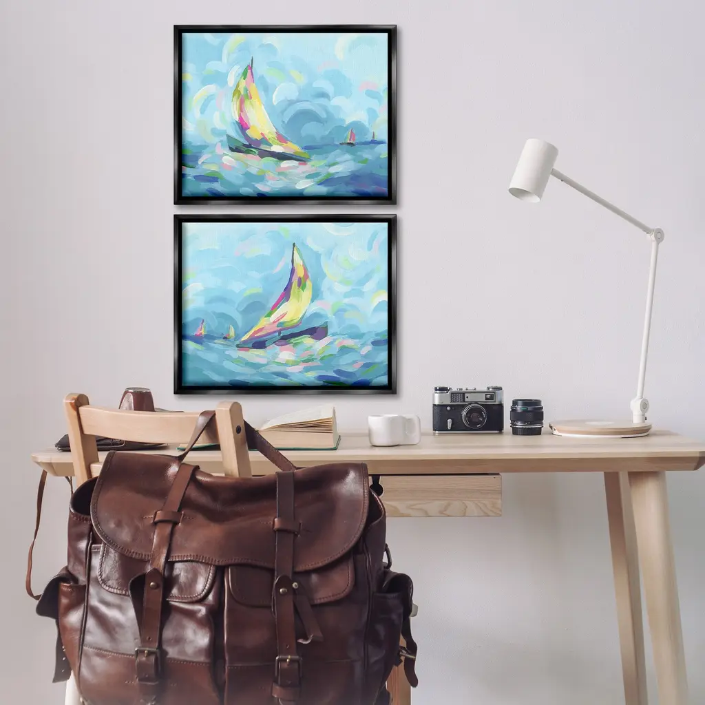 Elevate your home or office to the next level with Stupell Framed Floating Canvas Wall Art. Our premium hand-stretched canvas is mounted securely into a sturdy lightweight frame. The museum-style gap between the wrapped canvas and the box frame gives the illusion of floating artwork. Stupell Wall Art is made in the USA.Features: Dimensions: 2 Piece Set, Each Frame is 17 x 1.7 x 21Two Piece Floater Framed Canvas are available as 21"x17" or 31"x24" Panels. All Floater Frame Products have a 1.7" Depth.Wall Art is Ready to Hang with Hardware Free Hanging. No Installation required. For Easy Set Up Lean or Layer Artwork on Shelf or Against Wall. Artwork is Permently Fixed into the Frame.Our elevated 1.7" Thick Floating Frame is the perfect complement to our canvas style Wall Art. We use only the highest quality inks in house with industry leading printing solutions. Canvas is hand stretched over a durable wood foundation and then mounted securly into a Modern Box Frame. Made in the USA.Artwork Relates To: Boat, Sailboat, Transportation, Vehicle, Watercraft, Modern, Ocean, Sea, Nautical, Maritime, AbstractDesign by June Erica Vess