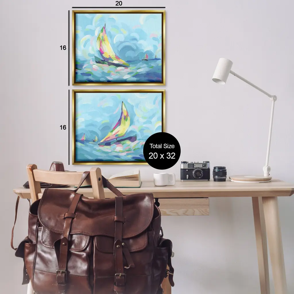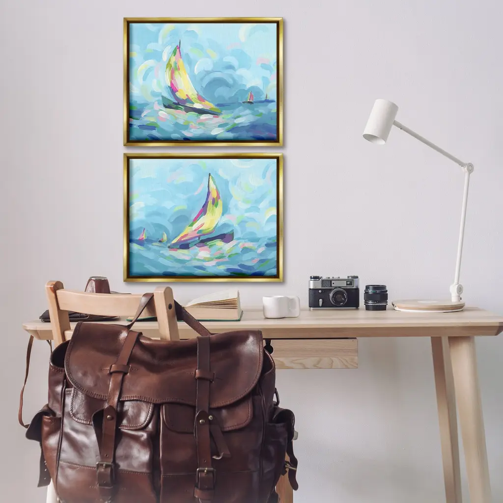 Elevate your home or office to the next level with Stupell Framed Floating Canvas Wall Art. Our premium hand-stretched canvas is mounted securely into a sturdy lightweight frame. The museum-style gap between the wrapped canvas and the box frame gives the illusion of floating artwork. Stupell Wall Art is made in the USA.Features: Dimensions: 2 Piece Set, Each Frame is 17 x 1.7 x 21Two Piece Floater Framed Canvas are available as 21"x17" or 31"x24" Panels. All Floater Frame Products have a 1.7" Depth.Wall Art is Ready to Hang with Hardware Free Hanging. No Installation required. For Easy Set Up Lean or Layer Artwork on Shelf or Against Wall. Artwork is Permently Fixed into the Frame.Our elevated 1.7" Thick Floating Frame is the perfect complement to our canvas style Wall Art. We use only the highest quality inks in house with industry leading printing solutions. Canvas is hand stretched over a durable wood foundation and then mounted securly into a Modern Box Frame. Made in the USA.Artwork Relates To: Boat, Sailboat, Transportation, Vehicle, Watercraft, Modern, Ocean, Sea, Nautical, Maritime, AbstractDesign by June Erica Vess