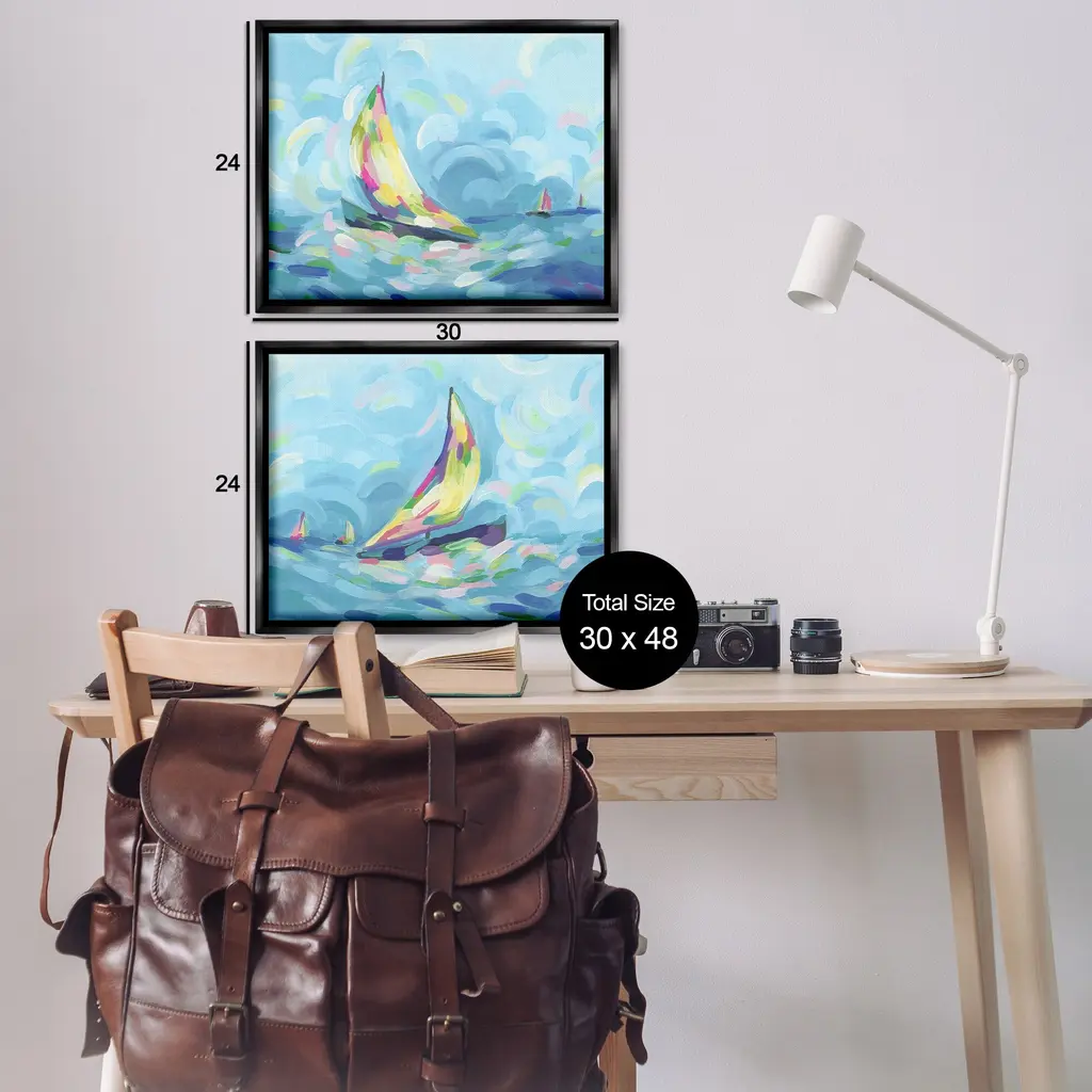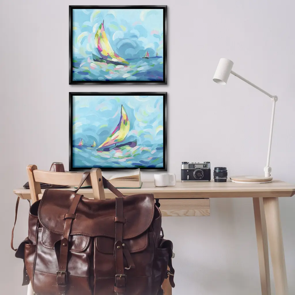 Elevate your home or office to the next level with Stupell Framed Floating Canvas Wall Art. Our premium hand-stretched canvas is mounted securely into a sturdy lightweight frame. The museum-style gap between the wrapped canvas and the box frame gives the illusion of floating artwork. Stupell Wall Art is made in the USA.Features: Dimensions: 2 Piece Set, Each Frame is 17 x 1.7 x 21Two Piece Floater Framed Canvas are available as 21"x17" or 31"x24" Panels. All Floater Frame Products have a 1.7" Depth.Wall Art is Ready to Hang with Hardware Free Hanging. No Installation required. For Easy Set Up Lean or Layer Artwork on Shelf or Against Wall. Artwork is Permently Fixed into the Frame.Our elevated 1.7" Thick Floating Frame is the perfect complement to our canvas style Wall Art. We use only the highest quality inks in house with industry leading printing solutions. Canvas is hand stretched over a durable wood foundation and then mounted securly into a Modern Box Frame. Made in the USA.Artwork Relates To: Boat, Sailboat, Transportation, Vehicle, Watercraft, Modern, Ocean, Sea, Nautical, Maritime, AbstractDesign by June Erica Vess