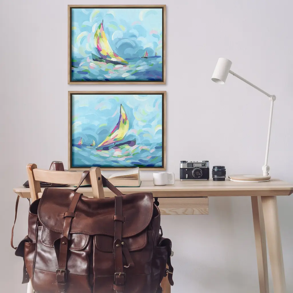 Elevate your home or office to the next level with Stupell Framed Floating Canvas Wall Art. Our premium hand-stretched canvas is mounted securely into a sturdy lightweight frame. The museum-style gap between the wrapped canvas and the box frame gives the illusion of floating artwork. Stupell Wall Art is made in the USA.Features: Dimensions: 2 Piece Set, Each Frame is 17 x 1.7 x 21Two Piece Floater Framed Canvas are available as 21"x17" or 31"x24" Panels. All Floater Frame Products have a 1.7" Depth.Wall Art is Ready to Hang with Hardware Free Hanging. No Installation required. For Easy Set Up Lean or Layer Artwork on Shelf or Against Wall. Artwork is Permently Fixed into the Frame.Our elevated 1.7" Thick Floating Frame is the perfect complement to our canvas style Wall Art. We use only the highest quality inks in house with industry leading printing solutions. Canvas is hand stretched over a durable wood foundation and then mounted securly into a Modern Box Frame. Made in the USA.Artwork Relates To: Boat, Sailboat, Transportation, Vehicle, Watercraft, Modern, Ocean, Sea, Nautical, Maritime, AbstractDesign by June Erica Vess