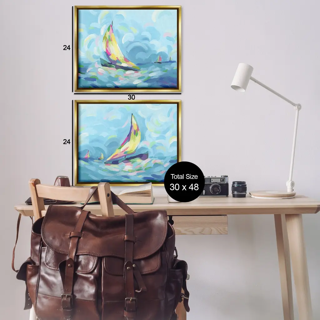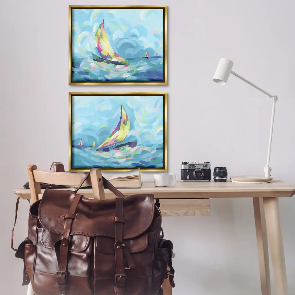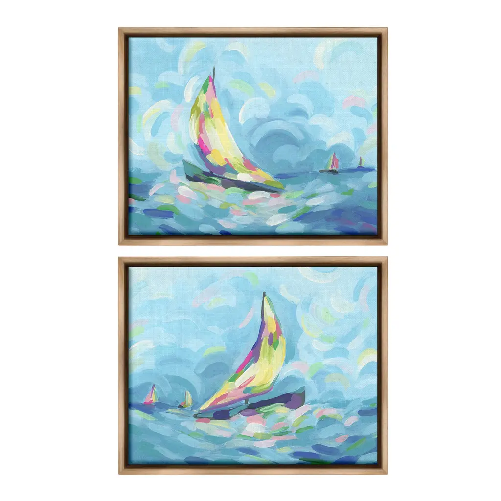 Elevate your home or office to the next level with Stupell Framed Floating Canvas Wall Art. Our premium hand-stretched canvas is mounted securely into a sturdy lightweight frame. The museum-style gap between the wrapped canvas and the box frame gives the illusion of floating artwork. Stupell Wall Art is made in the USA.Features: Dimensions: 2 Piece Set, Each Frame is 17 x 1.7 x 21Two Piece Floater Framed Canvas are available as 21"x17" or 31"x24" Panels. All Floater Frame Products have a 1.7" Depth.Wall Art is Ready to Hang with Hardware Free Hanging. No Installation required. For Easy Set Up Lean or Layer Artwork on Shelf or Against Wall. Artwork is Permently Fixed into the Frame.Our elevated 1.7" Thick Floating Frame is the perfect complement to our canvas style Wall Art. We use only the highest quality inks in house with industry leading printing solutions. Canvas is hand stretched over a durable wood foundation and then mounted securly into a Modern Box Frame. Made in the USA.Artwork Relates To: Boat, Sailboat, Transportation, Vehicle, Watercraft, Modern, Ocean, Sea, Nautical, Maritime, AbstractDesign by June Erica Vess