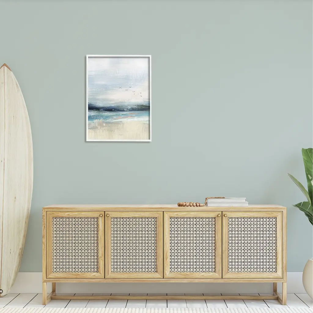 Our Framed Giclee Wall Art adds a touch of class to any space in your home or office. Frames are available in three alluring styles: black, gray farmhouse and white. Our textured artwork will add more depth and dimension to any space. Each piece is mounted with a 1.5 inch thick wood grain frame that is ready to hang! Looking for a statement piece? We have oversized artwork available. Room Type: Living Room, Den, Hallway, Office, Entryway, Study, Dining Room or Bedroom, Guest Room, Studio, Dorm or BoudoirFeatures: Dimensions: 11 x 1.5 x 14 FramedFramed Giclee Sizes Include Standard: 11 x 1.5 x 14 Large: 16 x 1.5 x 20 Oversized: 24 x 1.5 x 30Wall Art is Ready to Hang - No Installation or Hardware Needed. For Easy Set Up Lean or Layer Artwork on Shelf or Against Wall.Our giclée prints are carefully mounted on a durable MDF backing, and then perfectly finished in a 1.5 inch thick woodgrain frame. Mounted frame colors include black, gray farmhouse and white. Made In USA.Artwork Relates To: Animal, Bird, Canvas, Modern, Ocean, Landscape, BeachDesign by Nina Blue