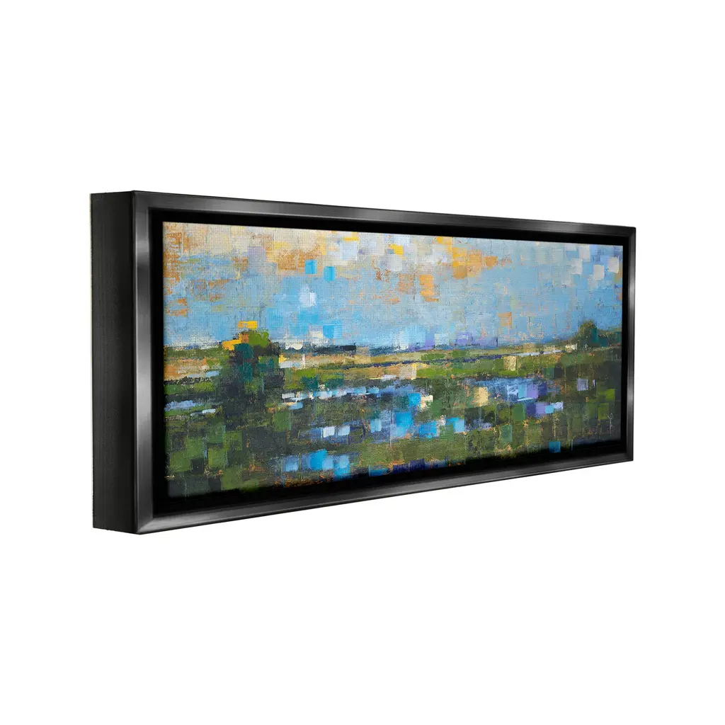 Elevate your home or office to the next level with Stupell Framed Floating Canvas Wall Art. Our premium hand-stretched canvas is mounted securely into a sturdy lightweight frame. The museum-style gap between the wrapped canvas and the box frame gives the illusion of floating artwork. Stupell Wall Art is made in the USA.Features: Dimensions: 25 x 1.7 x 11 Frame, 24 x 1.5 x 10 Canvas ArtFloating Frame Canvas Products are available in sizes 25"x11" and 31"x14". All Floating Frame Canvas Products have a 1.7" Depth.Wall Art is Ready to Hang with Hardware Free Hanging. No Installation required. For Easy Set Up Lean or Layer Artwork on Shelf or Against Wall. Artwork is Permently Fixed into the Frame.Our elevated 1.7" Thick Floating Frame is the perfect complement to our canvas style Wall Art. We use only the highest quality inks in house with industry leading printing solutions. Canvas is hand stretched over a durable wood foundation and then mounted securly into a Modern Box Frame. Made in the USA.Artwork Relates To: Painting, Modern, Abstract, Landscape, Rural, Cloud, Tree, RiverDesign by Liz Jardine