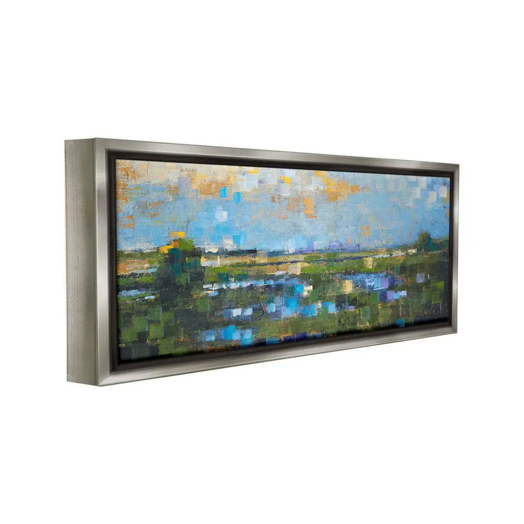 Elevate your home or office to the next level with Stupell Framed Floating Canvas Wall Art. Our premium hand-stretched canvas is mounted securely into a sturdy lightweight frame. The museum-style gap between the wrapped canvas and the box frame gives the illusion of floating artwork. Stupell Wall Art is made in the USA.Features: Dimensions: 25 x 1.7 x 11 Frame, 24 x 1.5 x 10 Canvas ArtFloating Frame Canvas Products are available in sizes 25"x11" and 31"x14". All Floating Frame Canvas Products have a 1.7" Depth.Wall Art is Ready to Hang with Hardware Free Hanging. No Installation required. For Easy Set Up Lean or Layer Artwork on Shelf or Against Wall. Artwork is Permently Fixed into the Frame.Our elevated 1.7" Thick Floating Frame is the perfect complement to our canvas style Wall Art. We use only the highest quality inks in house with industry leading printing solutions. Canvas is hand stretched over a durable wood foundation and then mounted securly into a Modern Box Frame. Made in the USA.Artwork Relates To: Painting, Modern, Abstract, Landscape, Rural, Cloud, Tree, RiverDesign by Liz Jardine