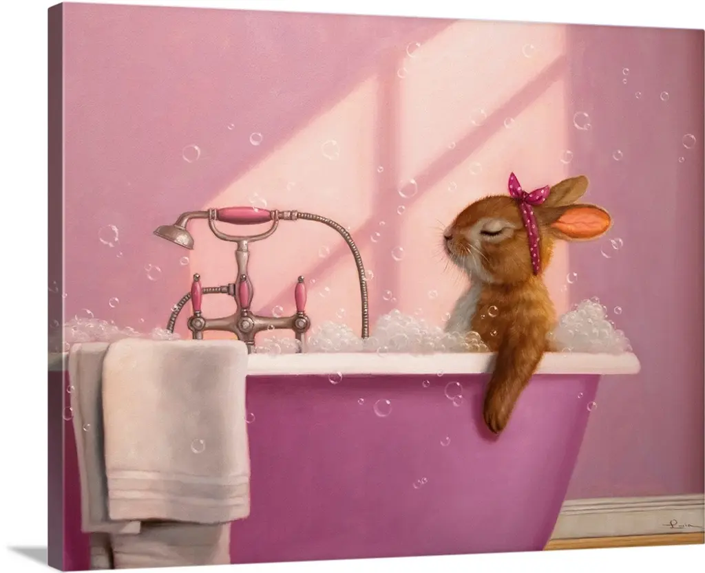 Stupell Bubble Bath Glam Pink Bubbles Female Lounging Canvas Wall Art - 16 X 20