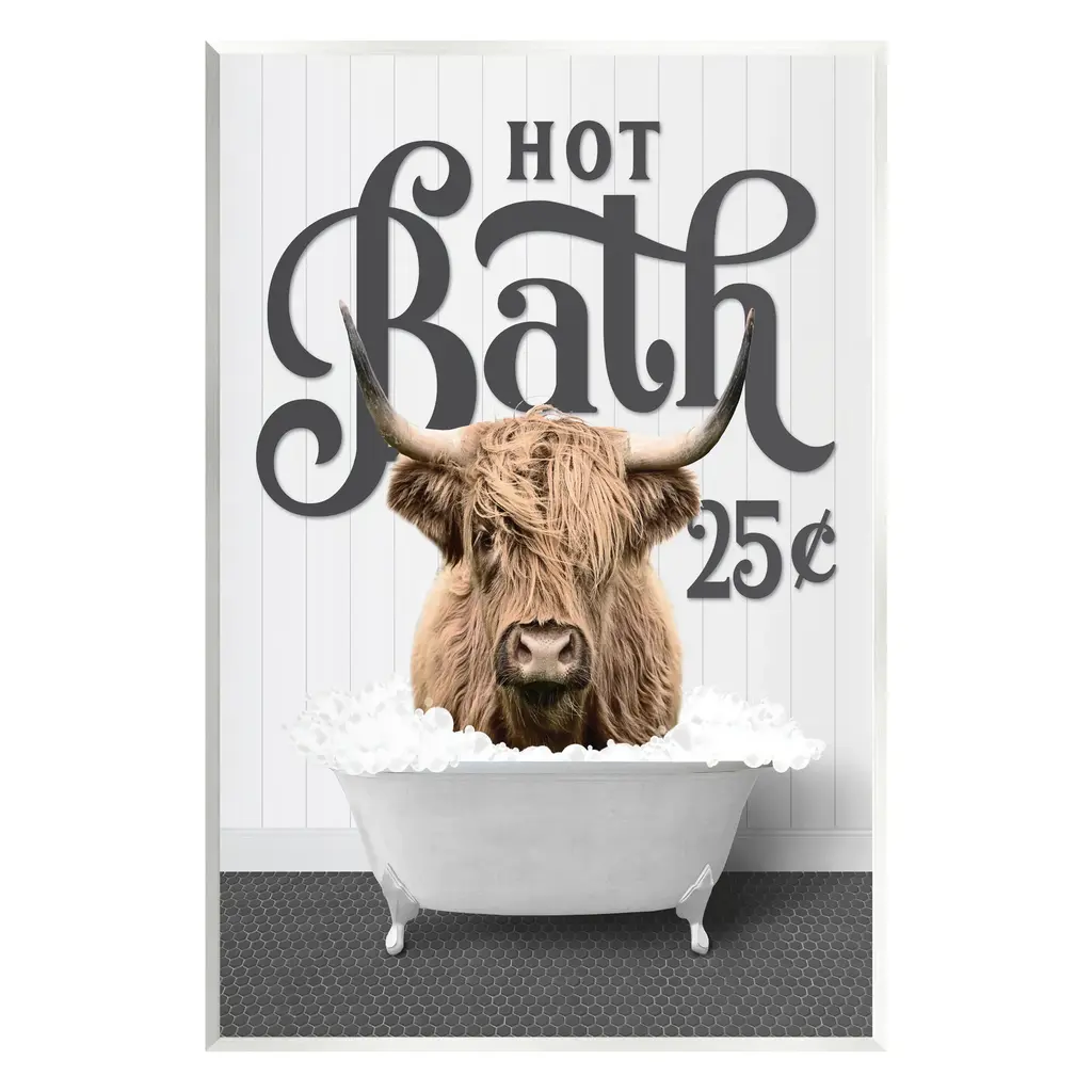 Our wall plaques start as high-quality lithograph prints mounted on durable 0.5-inch thick MDF wood. Each piece is hand finished and comes with a fresh layer of white foil on the sides to give it a crisp, clean look. Plaques arrive ready to hang without installation and come with removable plastic corners to keep them from damage in transit. Stupell Wall Art is made in the USA.Features: Dimensions: 10 x 0.5 x 15 InchesWall Plaque Sizes Include Standard: 10 x 0.5 x 15 Oversized: 13 x 0.5 x 19Wall Art is Ready to Hang with Hardware Free Hanging. No installation required. For Easy Set Up Lean or Layer Artwork on Shelf or Against Wall.All of our wall plaques start off as high quality lithograph prints that are then mounted on durable 0.5 inch thick MDF wood. Each piece is hand finished and comes with a fresh layer of foil on the sides to give it a crisp clean look. Made In USA.Artwork Relates To: Animal, Mammal, Wildlife, Bathroom, Rustic, Bathtub, The Bath Co, Cow, Highland CattleDesign by Lettered and Lined