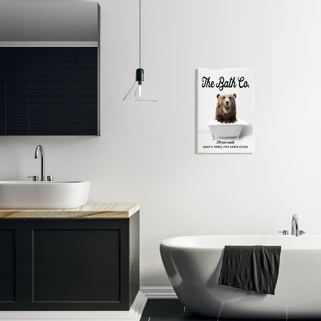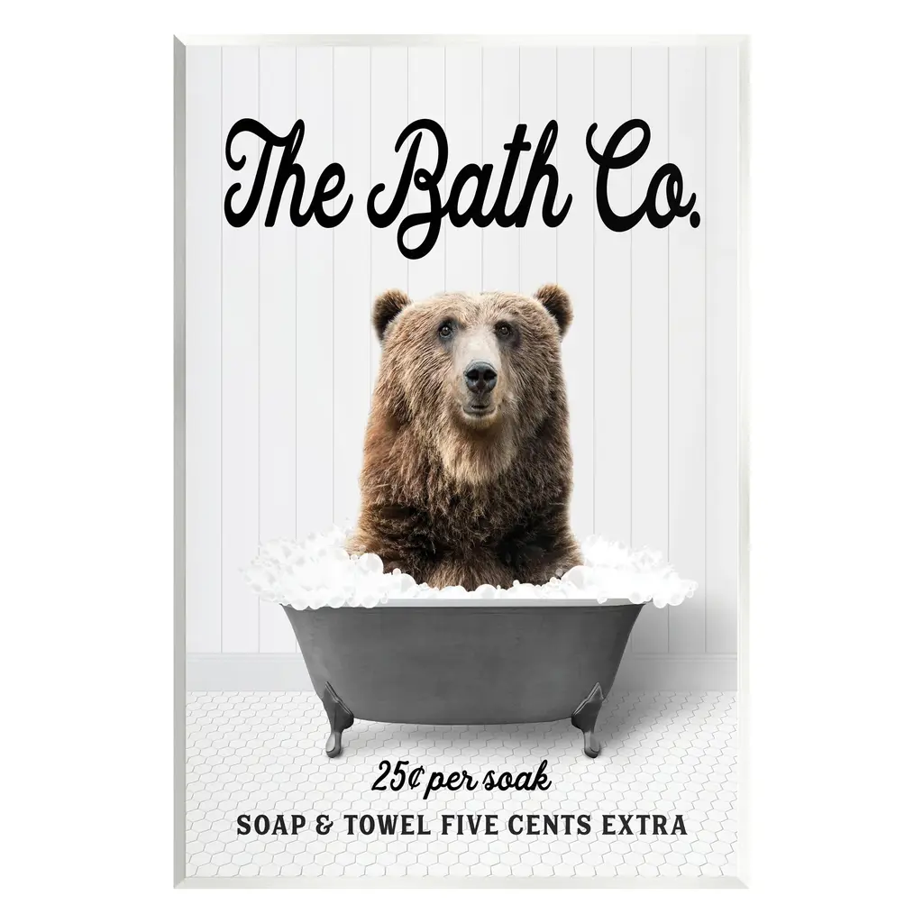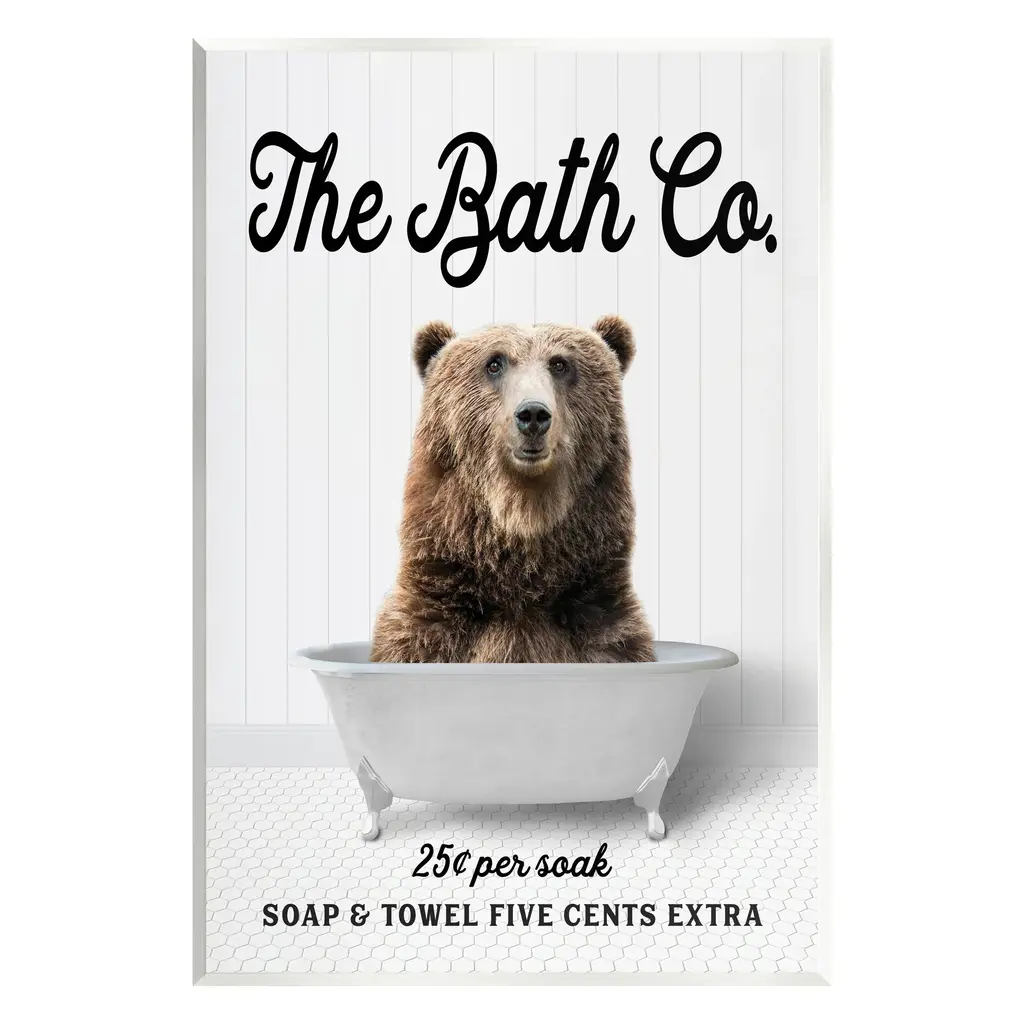 Our wall plaques start as high-quality lithograph prints mounted on durable 0.5-inch thick MDF wood. Each piece is hand finished and comes with a fresh layer of white foil on the sides to give it a crisp, clean look. Plaques arrive ready to hang without installation and come with removable plastic corners to keep them from damage in transit. Stupell Wall Art is made in the USA.Features: Dimensions: 10 x 0.5 x 15 InchesWall Plaque Sizes Include Standard: 10 x 0.5 x 15 Oversized: 13 x 0.5 x 19Wall Art is Ready to Hang with Hardware Free Hanging. No installation required. For Easy Set Up Lean or Layer Artwork on Shelf or Against Wall.All of our wall plaques start off as high quality lithograph prints that are then mounted on durable 0.5 inch thick MDF wood. Each piece is hand finished and comes with a fresh layer of foil on the sides to give it a crisp clean look. Made In USA.Artwork Relates To: Animal, Mammal, Bathroom, Bathtub, Phrase, Tub, BearDesign by Lettered and Lined