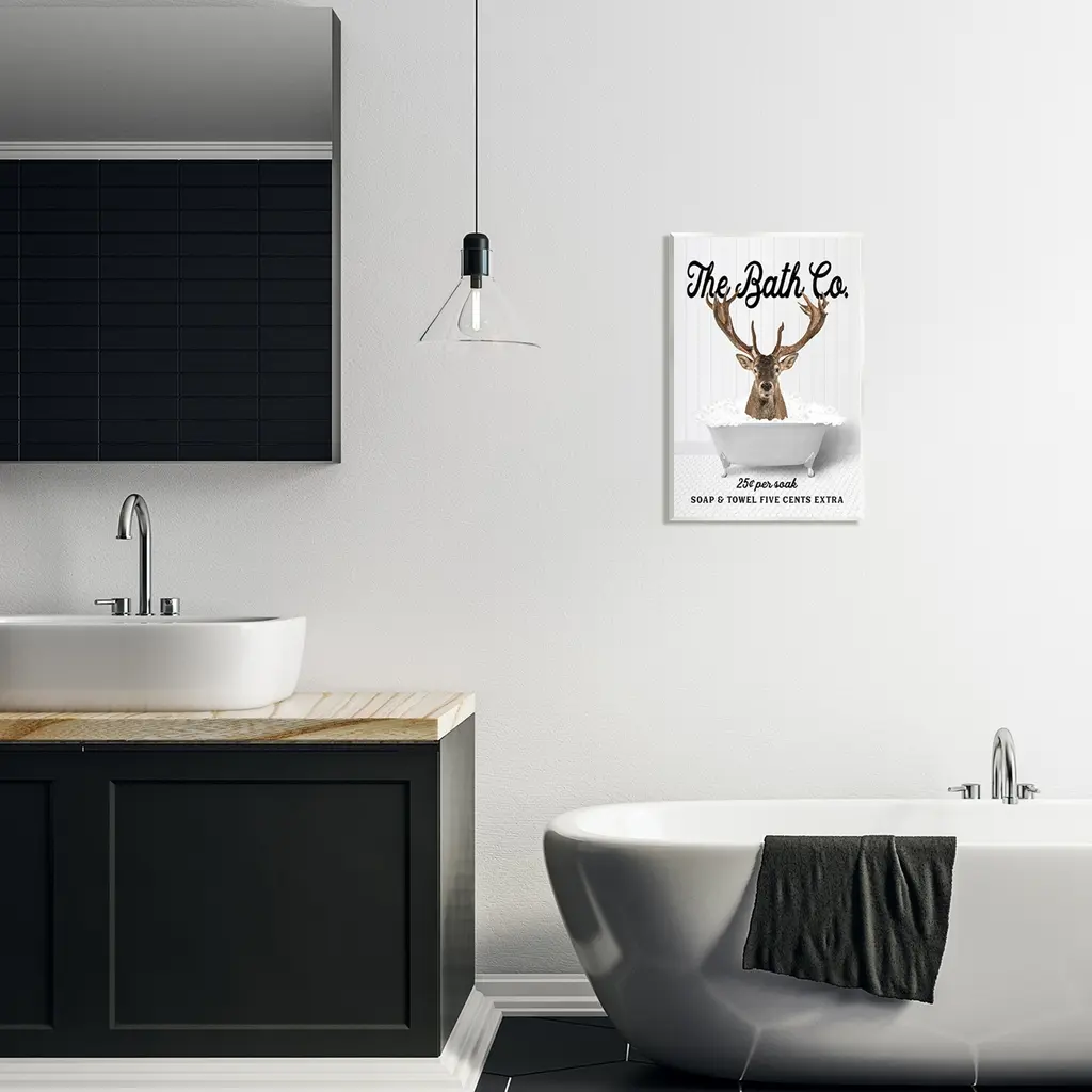 Our wall plaques start as high-quality lithograph prints mounted on durable 0.5-inch thick MDF wood. Each piece is hand finished and comes with a fresh layer of white foil on the sides to give it a crisp, clean look. Plaques arrive ready to hang without installation and come with removable plastic corners to keep them from damage in transit. Stupell Wall Art is made in the USA.Features: Dimensions: 10 x 0.5 x 15 InchesWall Plaque Sizes Include Standard: 10 x 0.5 x 15 Oversized: 13 x 0.5 x 19Wall Art is Ready to Hang with Hardware Free Hanging. No installation required. For Easy Set Up Lean or Layer Artwork on Shelf or Against Wall.All of our wall plaques start off as high quality lithograph prints that are then mounted on durable 0.5 inch thick MDF wood. Each piece is hand finished and comes with a fresh layer of foil on the sides to give it a crisp clean look. Made In USA.Artwork Relates To: Animal, Mammal, Bathroom, Bathtub, Phrase, Tub, Deer, ElkDesign by Lettered and Lined