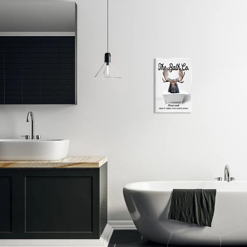 Our wall plaques start as high-quality lithograph prints mounted on durable 0.5-inch thick MDF wood. Each piece is hand finished and comes with a fresh layer of white foil on the sides to give it a crisp, clean look. Plaques arrive ready to hang without installation and come with removable plastic corners to keep them from damage in transit. Stupell Wall Art is made in the USA.Features: Dimensions: 10 x 0.5 x 15 InchesWall Plaque Sizes Include Standard: 10 x 0.5 x 15 Oversized: 13 x 0.5 x 19Wall Art is Ready to Hang with Hardware Free Hanging. No installation required. For Easy Set Up Lean or Layer Artwork on Shelf or Against Wall.All of our wall plaques start off as high quality lithograph prints that are then mounted on durable 0.5 inch thick MDF wood. Each piece is hand finished and comes with a fresh layer of foil on the sides to give it a crisp clean look. Made In USA.Artwork Relates To: Animal, Mammal, Bathroom, Bathtub, Phrase, Tub, MooseDesign by Lettered and Lined