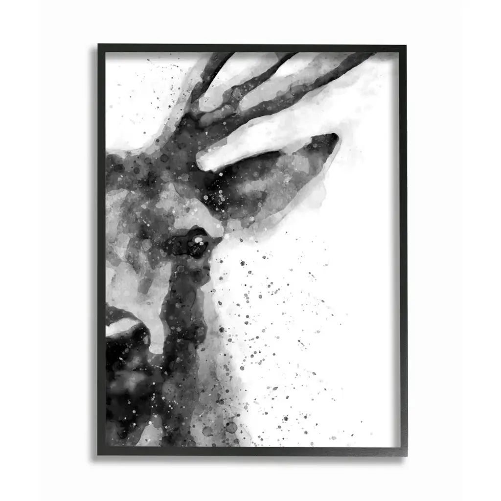 Stupell Buck Reindeer Antlers Wild Forest Animal Black White Framed Wall Art - 11 X 14 - Grey