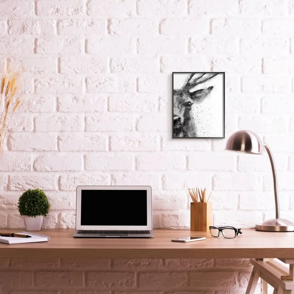 Stupell Buck Reindeer Antlers Wild Forest Animal Black White Framed Wall Art - 16 X 20 - Grey