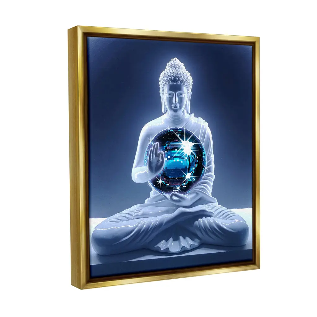 Elevate your home or office to the next level with Stupell Framed Floating Canvas Wall Art. Our premium hand-stretched canvas is mounted securely into a sturdy lightweight frame. The museum-style gap between the wrapped canvas and the box frame gives the illusion of floating artwork. Stupell Wall Art is made in the USA.Features: Dimensions: 17 x 1.7 x 21 Frame, 16 x 1.5 x 20 Canvas ArtFloating Frame Canvas Products are available in sizes 17"x21" and 25"x31". All Floating Frame Canvas Products have a 1.7" Depth.Wall Art is Ready to Hang with Hardware Free Hanging. No Installation required. For Easy Set Up Lean or Layer Artwork on Shelf or Against Wall. Artwork is Permently Fixed into the Frame.Our elevated 1.7" Thick Floating Frame is the perfect complement to our canvas style Wall Art. We use only the highest quality inks in house with industry leading printing solutions. Canvas is hand stretched over a durable wood foundation and then mounted securly into a Modern Box Frame. Made in the USA.Artwork Relates To: Person, Prayer, Buddha, Spiritual, Disco Ball, Music, DanceDesign by Ziwei Li