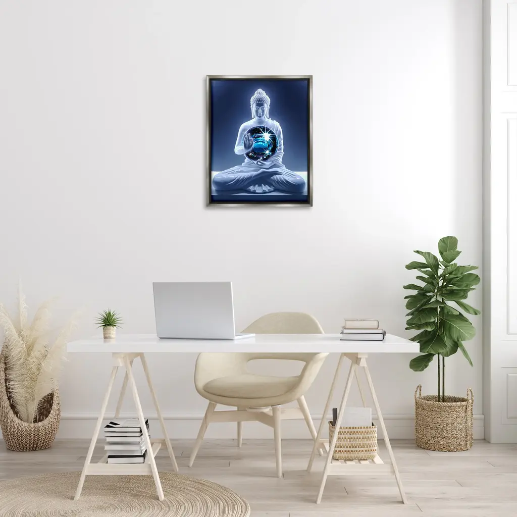 Elevate your home or office to the next level with Stupell Framed Floating Canvas Wall Art. Our premium hand-stretched canvas is mounted securely into a sturdy lightweight frame. The museum-style gap between the wrapped canvas and the box frame gives the illusion of floating artwork. Stupell Wall Art is made in the USA.Features: Dimensions: 17 x 1.7 x 21 Frame, 16 x 1.5 x 20 Canvas ArtFloating Frame Canvas Products are available in sizes 17"x21" and 25"x31". All Floating Frame Canvas Products have a 1.7" Depth.Wall Art is Ready to Hang with Hardware Free Hanging. No Installation required. For Easy Set Up Lean or Layer Artwork on Shelf or Against Wall. Artwork is Permently Fixed into the Frame.Our elevated 1.7" Thick Floating Frame is the perfect complement to our canvas style Wall Art. We use only the highest quality inks in house with industry leading printing solutions. Canvas is hand stretched over a durable wood foundation and then mounted securly into a Modern Box Frame. Made in the USA.Artwork Relates To: Person, Prayer, Buddha, Spiritual, Disco Ball, Music, DanceDesign by Ziwei Li