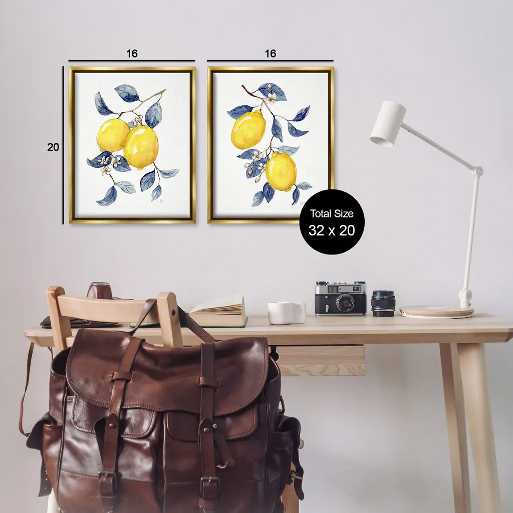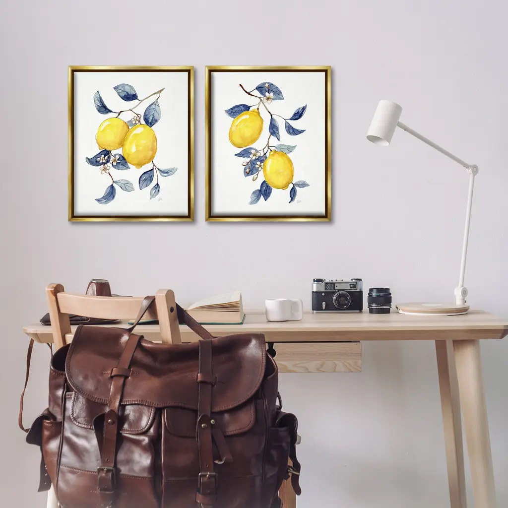 Elevate your home or office to the next level with Stupell Framed Floating Canvas Wall Art. Our premium hand-stretched canvas is mounted securely into a sturdy lightweight frame. The museum-style gap between the wrapped canvas and the box frame gives the illusion of floating artwork. Stupell Wall Art is made in the USA.Features: Dimensions: 2 Piece Set, Each Frame is 17 x 1.7 x 21Two Piece Floater Framed Canvas are available as 17x21 or 25x31 Panels. All Floater Frame Products have a 1.7" Depth.Wall Art is Ready to Hang with Hardware Free Hanging. No Installation required. For Easy Set Up Lean or Layer Artwork on Shelf or Against Wall. Artwork is Permently Fixed into the Frame.Our elevated 1.7" Thick Floating Frame is the perfect complement to our canvas style Wall Art. We use only the highest quality inks in house with industry leading printing solutions. Canvas is hand stretched over a durable wood foundation and then mounted securly into a Modern Box Frame. Made in the USA.Artwork Relates To: Citrus Fruit, Food, Fruit, Lemon, Plant, Minimal, Country, Flower, BlossomDesign by Nan