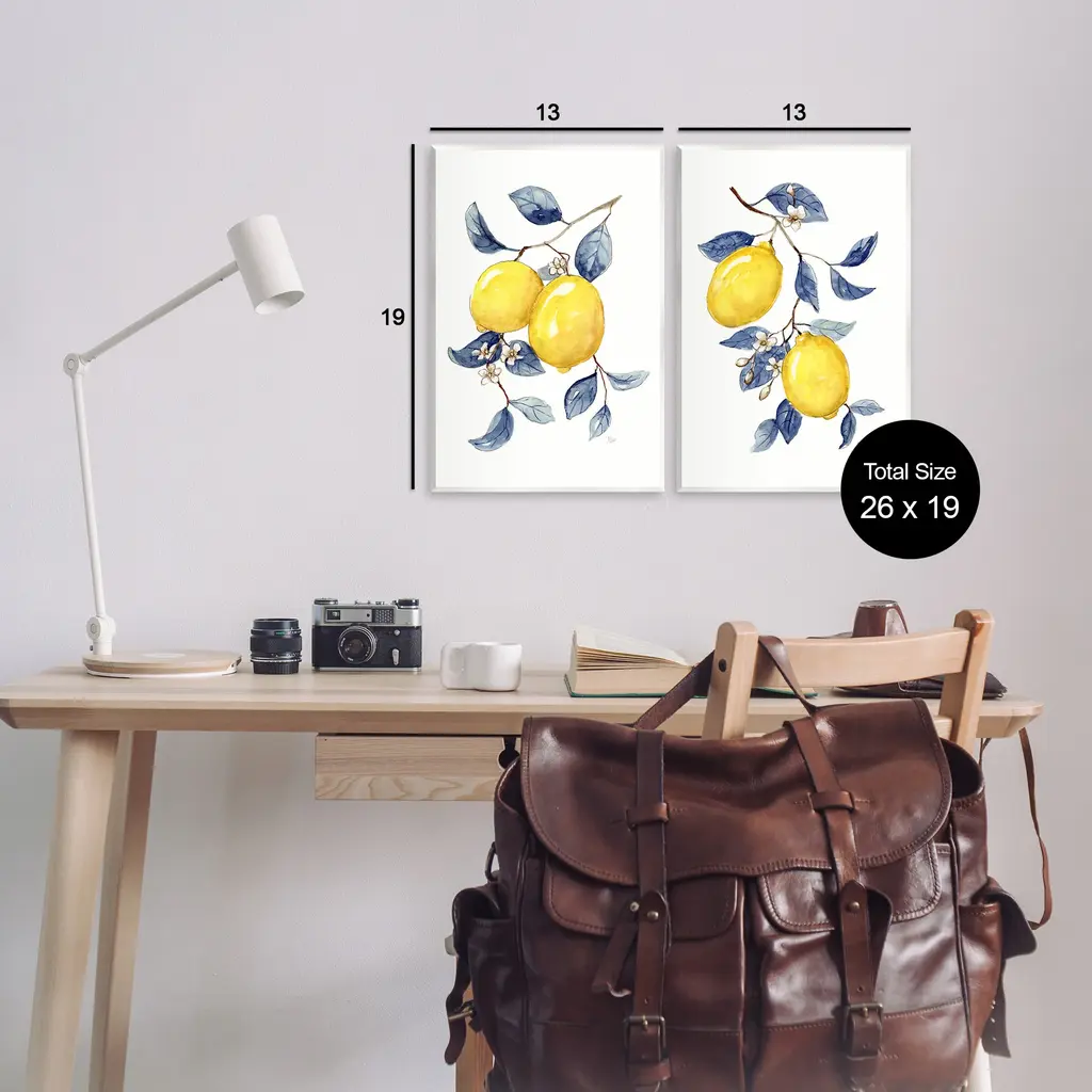 Fill any space with Stupell Wall Art Sets. Our wall plaques start as high-quality lithograph prints mounted on durable 0.5-inch thick MDF wood. Each piece is hand finished and comes with a fresh layer of white foil on the sides to give it a crisp, clean look. Plaques arrive ready to hang without installation and come with removable plastic corners to keep them from damage in transit. Stupell Wall Art is made in the USA.Features: Dimensions: 2 Piece Set, Each Panel is 10 x 0.5 x 15 InchesTwo Piece Wall Plaque Sets are available as 10"x15" or 13"x19" Panels. All Wall Art Plaques have a 0.5" Depth.Wall Art is Ready to Hang with Hardware Free Hanging. No installation required. For Easy Set Up Lean or Layer Artwork on Shelf or Against Wall.All of our wall plaques start off as high quality lithograph prints that are then mounted on durable 0.5 inch thick MDF wood. Each piece is hand finished and comes with a fresh layer of foil on the sides to give it a crisp clean look. Made In USA.Artwork Relates To: Citrus Fruit, Food, Fruit, Lemon, Plant, Minimal, Country, Flower, BlossomDesign by Nan