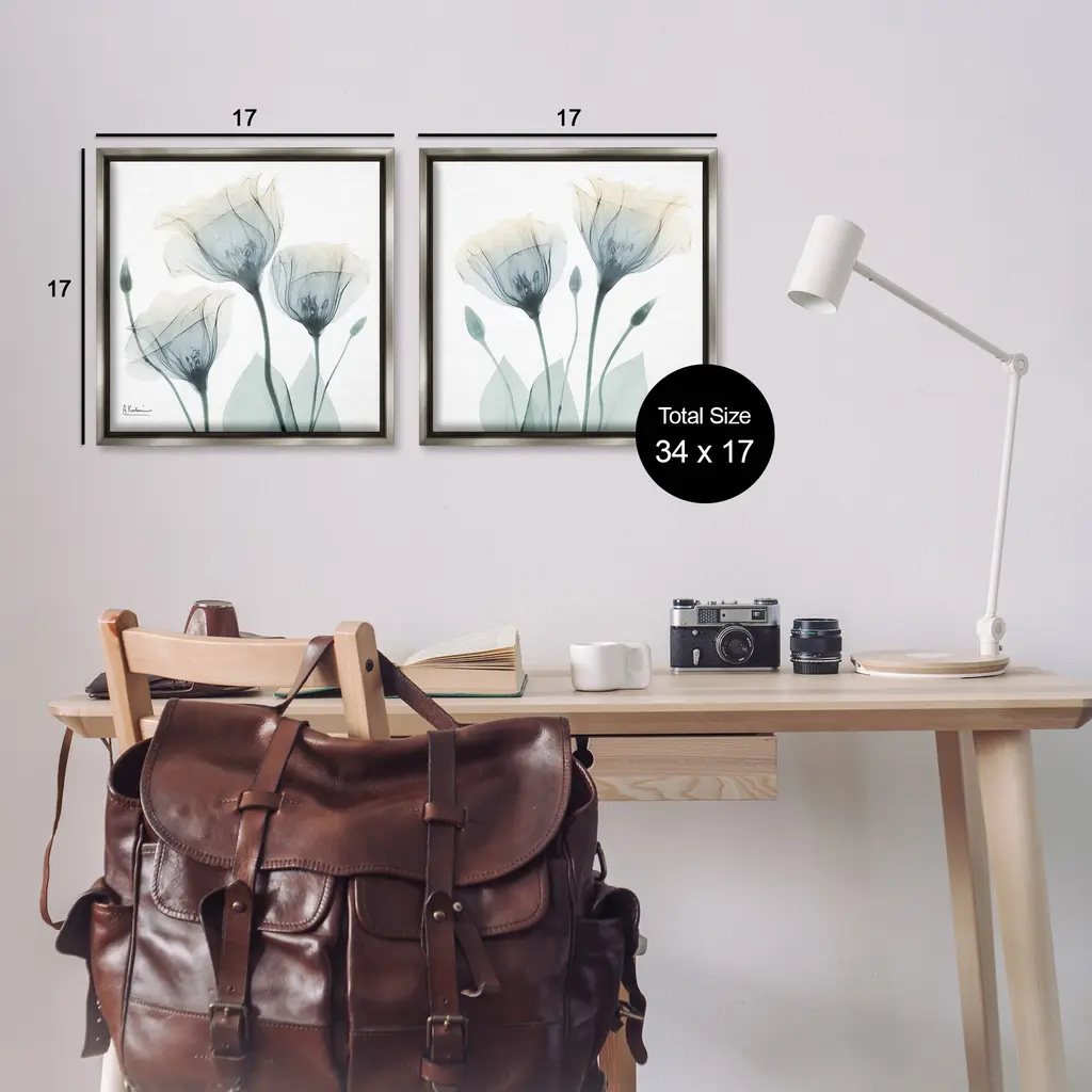 Elevate your home or office to the next level with Stupell Framed Floating Canvas Wall Art. Our premium hand-stretched canvas is mounted securely into a sturdy lightweight frame. The museum-style gap between the wrapped canvas and the box frame gives the illusion of floating artwork. Stupell Wall Art is made in the USA.Features: Dimensions: 2 Piece Set, Each Frame is 18 x 1.7 x 18Two Piece Floating Frame Canvas Products are available as 18"x18" or 25"x25" Panels. All Floating Frame Canvas Products have a 1.7" Depth.Wall Art is Ready to Hang with Hardware Free Hanging. No Installation required. For Easy Set Up Lean or Layer Artwork on Shelf or Against Wall. Artwork is Permently Fixed into the Frame.Our elevated 1.7" Thick Floating Frame is the perfect complement to our canvas style Wall Art. We use only the highest quality inks in house with industry leading printing solutions. Canvas is hand stretched over a durable wood foundation and then mounted securly into a Modern Box Frame. Made in the USA.Artwork Relates To: Flower, Plant, Abstract, Modern, X-Ray, Blossom, Leaf, NatureDesign by Albert Koetsier