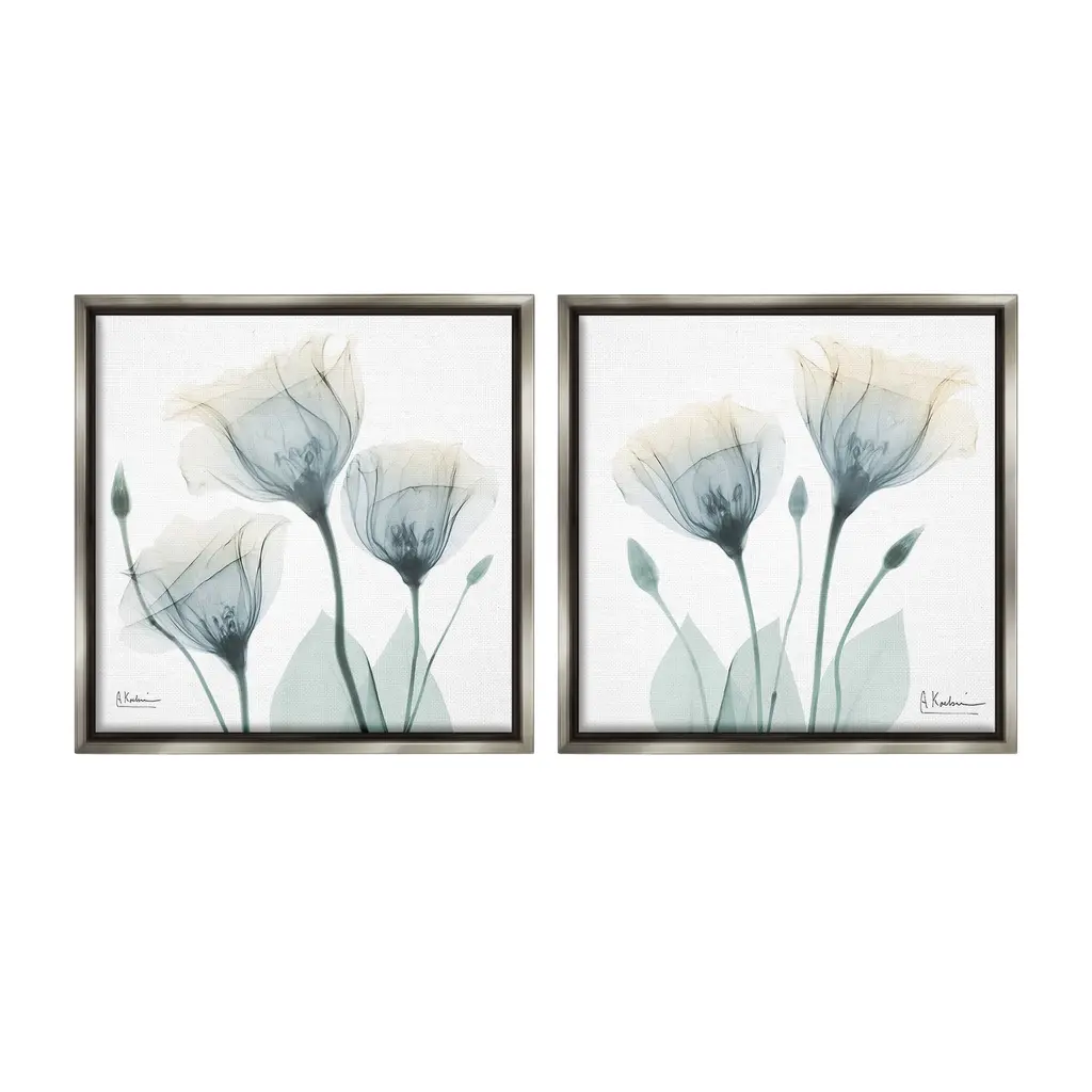 Elevate your home or office to the next level with Stupell Framed Floating Canvas Wall Art. Our premium hand-stretched canvas is mounted securely into a sturdy lightweight frame. The museum-style gap between the wrapped canvas and the box frame gives the illusion of floating artwork. Stupell Wall Art is made in the USA.Features: Dimensions: 2 Piece Set, Each Frame is 18 x 1.7 x 18Two Piece Floating Frame Canvas Products are available as 18"x18" or 25"x25" Panels. All Floating Frame Canvas Products have a 1.7" Depth.Wall Art is Ready to Hang with Hardware Free Hanging. No Installation required. For Easy Set Up Lean or Layer Artwork on Shelf or Against Wall. Artwork is Permently Fixed into the Frame.Our elevated 1.7" Thick Floating Frame is the perfect complement to our canvas style Wall Art. We use only the highest quality inks in house with industry leading printing solutions. Canvas is hand stretched over a durable wood foundation and then mounted securly into a Modern Box Frame. Made in the USA.Artwork Relates To: Flower, Plant, Abstract, Modern, X-Ray, Blossom, Leaf, NatureDesign by Albert Koetsier
