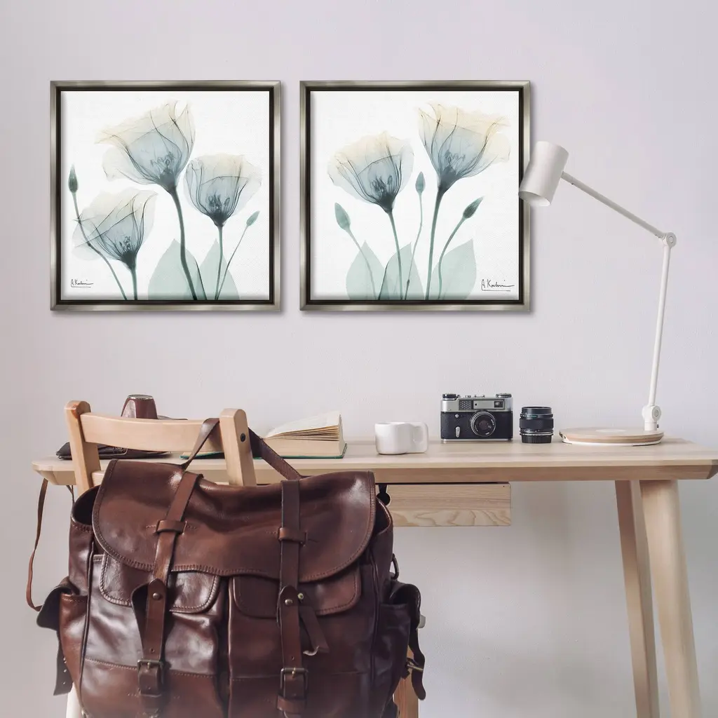 Elevate your home or office to the next level with Stupell Framed Floating Canvas Wall Art. Our premium hand-stretched canvas is mounted securely into a sturdy lightweight frame. The museum-style gap between the wrapped canvas and the box frame gives the illusion of floating artwork. Stupell Wall Art is made in the USA.Features: Dimensions: 2 Piece Set, Each Frame is 18 x 1.7 x 18Two Piece Floating Frame Canvas Products are available as 18"x18" or 25"x25" Panels. All Floating Frame Canvas Products have a 1.7" Depth.Wall Art is Ready to Hang with Hardware Free Hanging. No Installation required. For Easy Set Up Lean or Layer Artwork on Shelf or Against Wall. Artwork is Permently Fixed into the Frame.Our elevated 1.7" Thick Floating Frame is the perfect complement to our canvas style Wall Art. We use only the highest quality inks in house with industry leading printing solutions. Canvas is hand stretched over a durable wood foundation and then mounted securly into a Modern Box Frame. Made in the USA.Artwork Relates To: Flower, Plant, Abstract, Modern, X-Ray, Blossom, Leaf, NatureDesign by Albert Koetsier