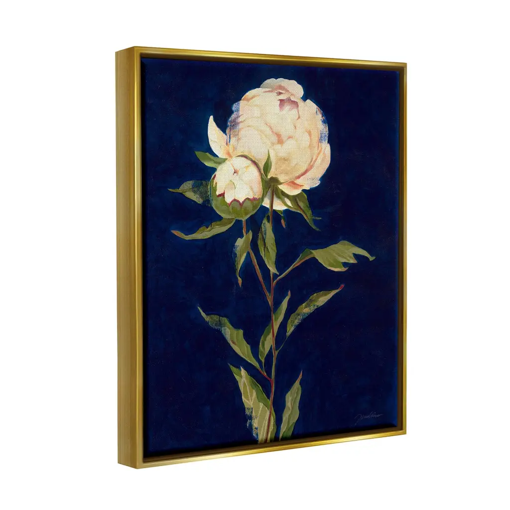 Elevate your home or office to the next level with Stupell Framed Floating Canvas Wall Art. Our premium hand stretched canvas is mounted securly into a sturdy lightweight frame. The museum style gap between wrapped canvas and box frame gives the illusion of floating artwork.Features:Floating Frame Sizes IncludeStandard: 21 x 1.7 x 17Oversized: 31 x 1.7 x 25Wall Art is Ready to Hang - No Installation or Hardware Needed. For Easy Set Up Lean or Layer Artwork on Shelf or Against Wall.Artwork Relates To: Painting, Rose, Flower, Plant, Blossom, Bloom, Blue Background, Dark, VividOur elevated 1.7" Thick Floating Frame is the perfect complement to our canvas style Wall Art. We use only the highest quality inks in house with industry leading printing solutions. Canvas is hand stretched over a durable wood foundation and then mounted securly into a Modern Box Frame. Made in the USA.Design by Liz Jardine