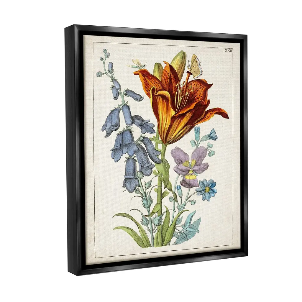Stupell Bugs & Vintage Flowers Framed Floater Canvas Wall Art Design By World Art Group - 17 X 21 - Black