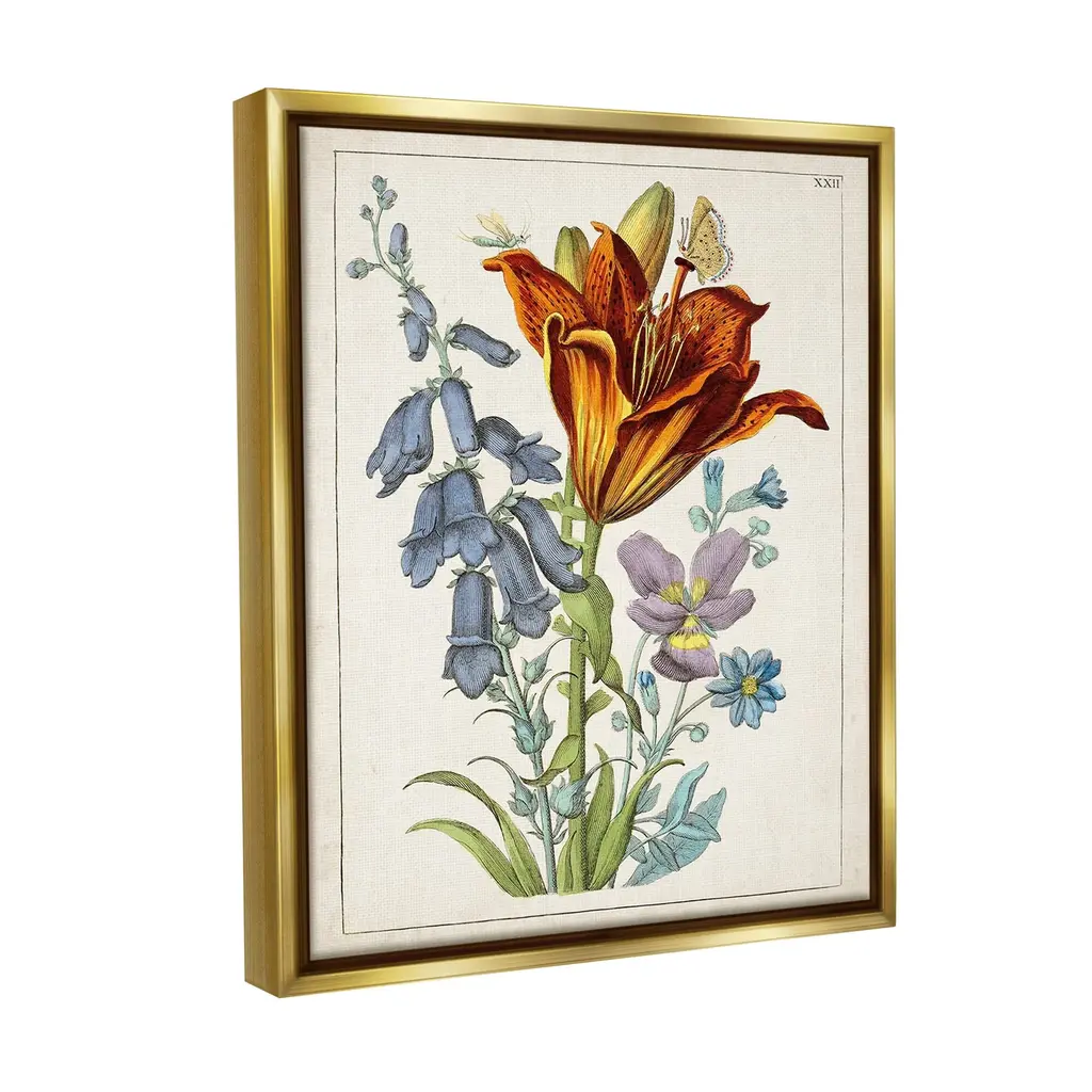 Stupell Bugs & Vintage Flowers Framed Floater Canvas Wall Art Design By World Art Group - 17 X 21 - Gold