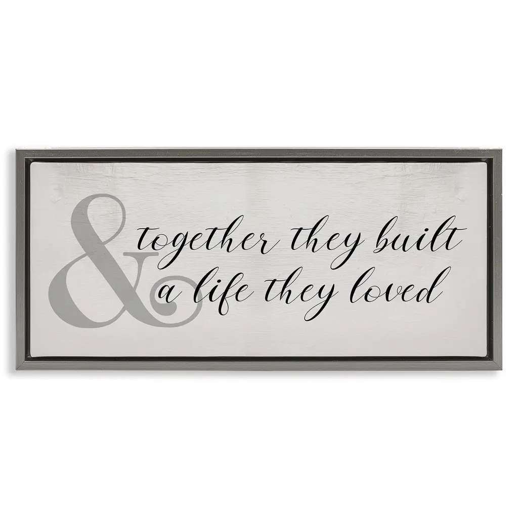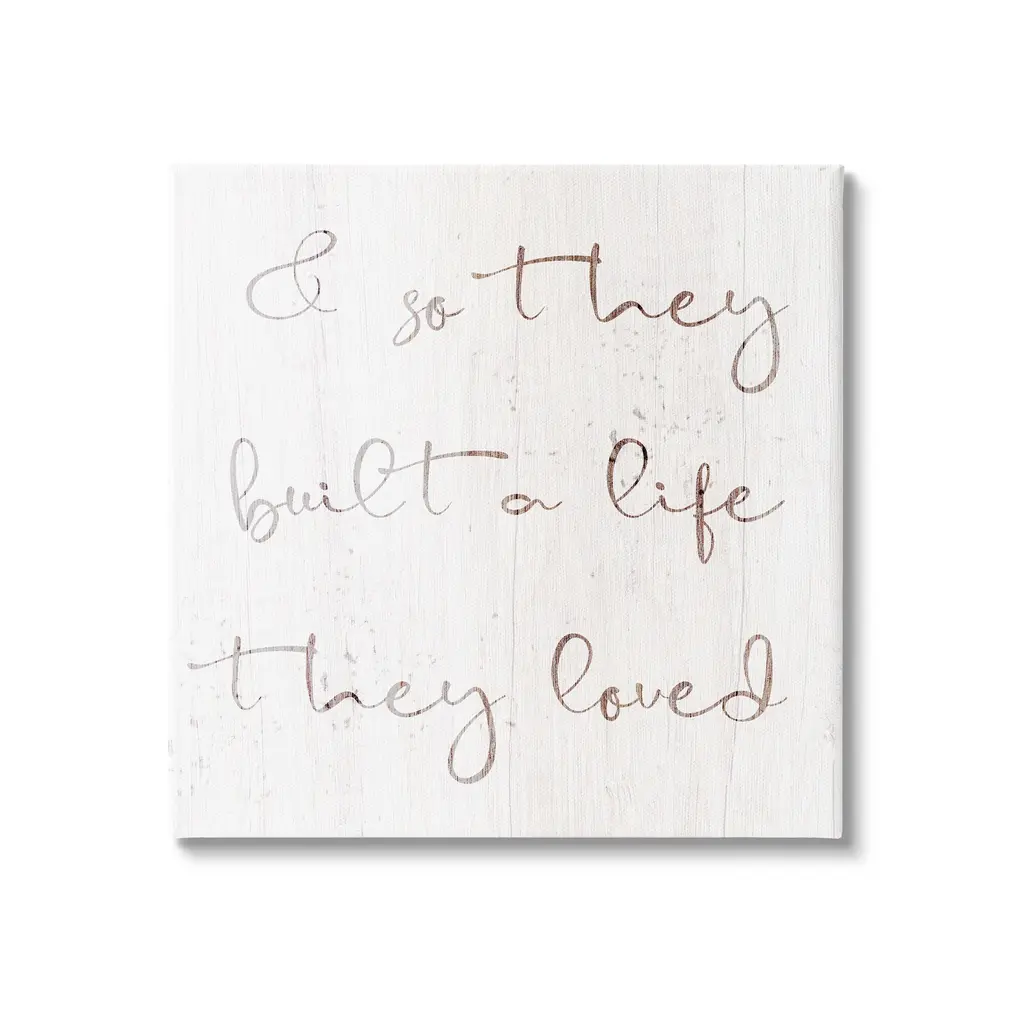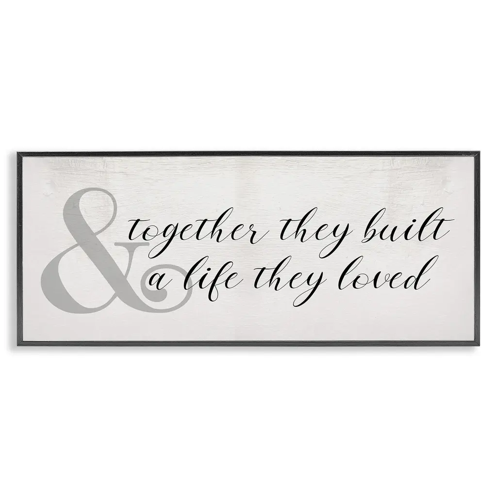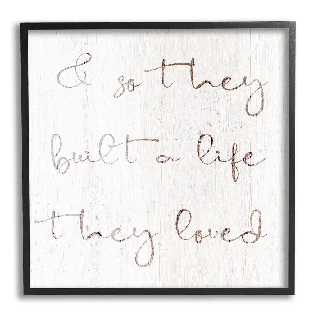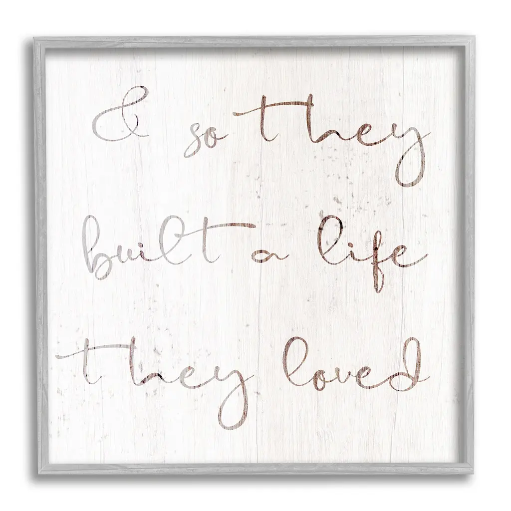 Add dimension to any room with our textured Framed Giclee Artwork. Our framed artwork is securely mounted into a 1.5-inch thick wood grain frame and ready to hang. Frames are available in three alluring styles: black, gray farmhouse and white. In addition, you should check out our oversized options if you want a statement piece. Stupell Wall Art is made in the USA.Features: Dimensions: 12 x 1.5 x 12 FramedFramed Giclee Sizes Include Standard: 12 x 1.5 x 12 Large: 17 x 1.5 x 17 Oversized: 24 x 1.5 x 24Wall Art is Ready to Hang - No Installation or Hardware Needed. For Easy Set Up Lean or Layer Artwork on Shelf or Against Wall.Our giclée prints are carefully mounted on a durable MDF backing, and then perfectly finished in a 1.5 inch thick woodgrain frame. Mounted frame colors include black, gray farmhouse and white. Made In USA.Artwork Relates To: Romance, Romantic, Love, Couple, Farmhouse, & So They Built A Life They LovedDesign by Lil' Rue