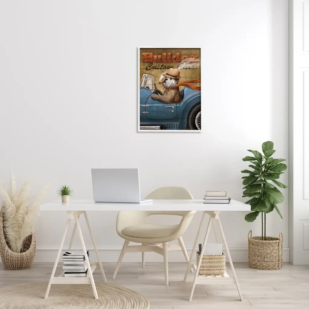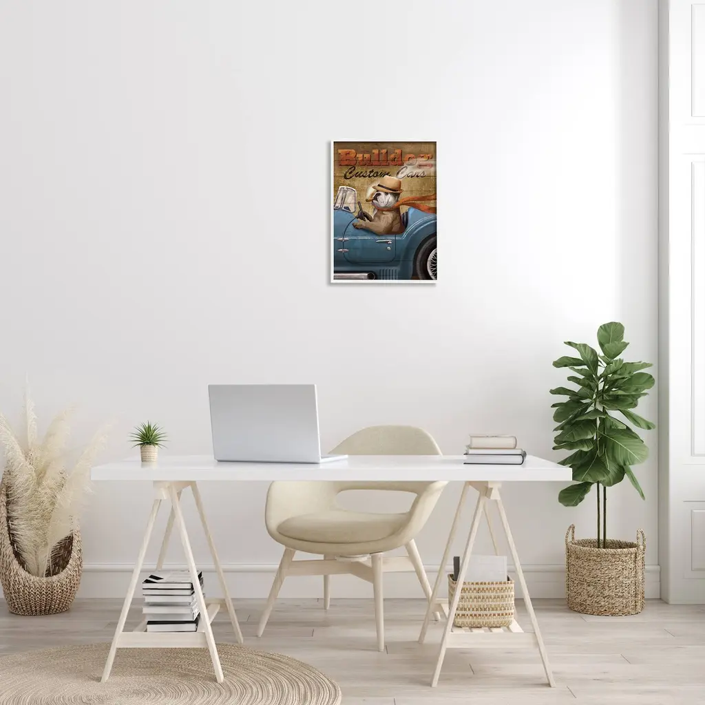 Stupell Bulldog Custom Cars Sign Vintage Automobile Cigar Dog Framed Wall Art - Brown - 24 X 30 - White