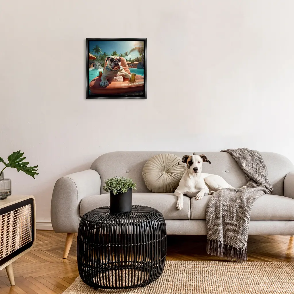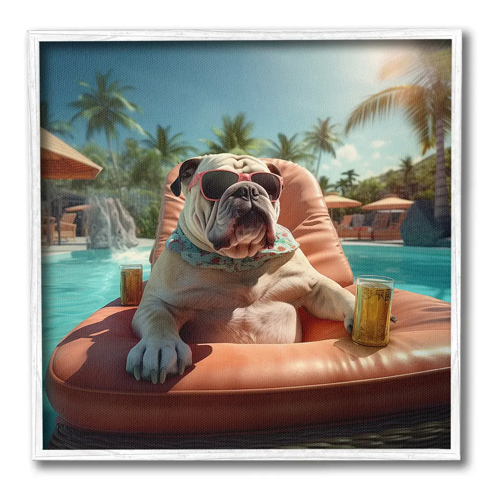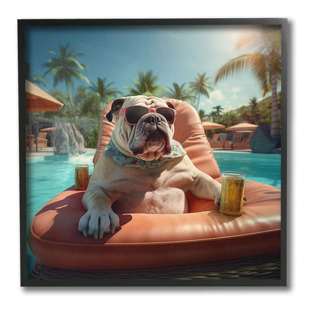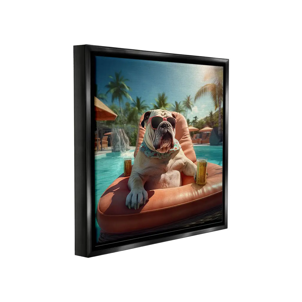 Stupell Bulldog In Resort Pool Framed Floater Canvas Wall Art Design By Jim Baldwin - 25 X 25 - Black