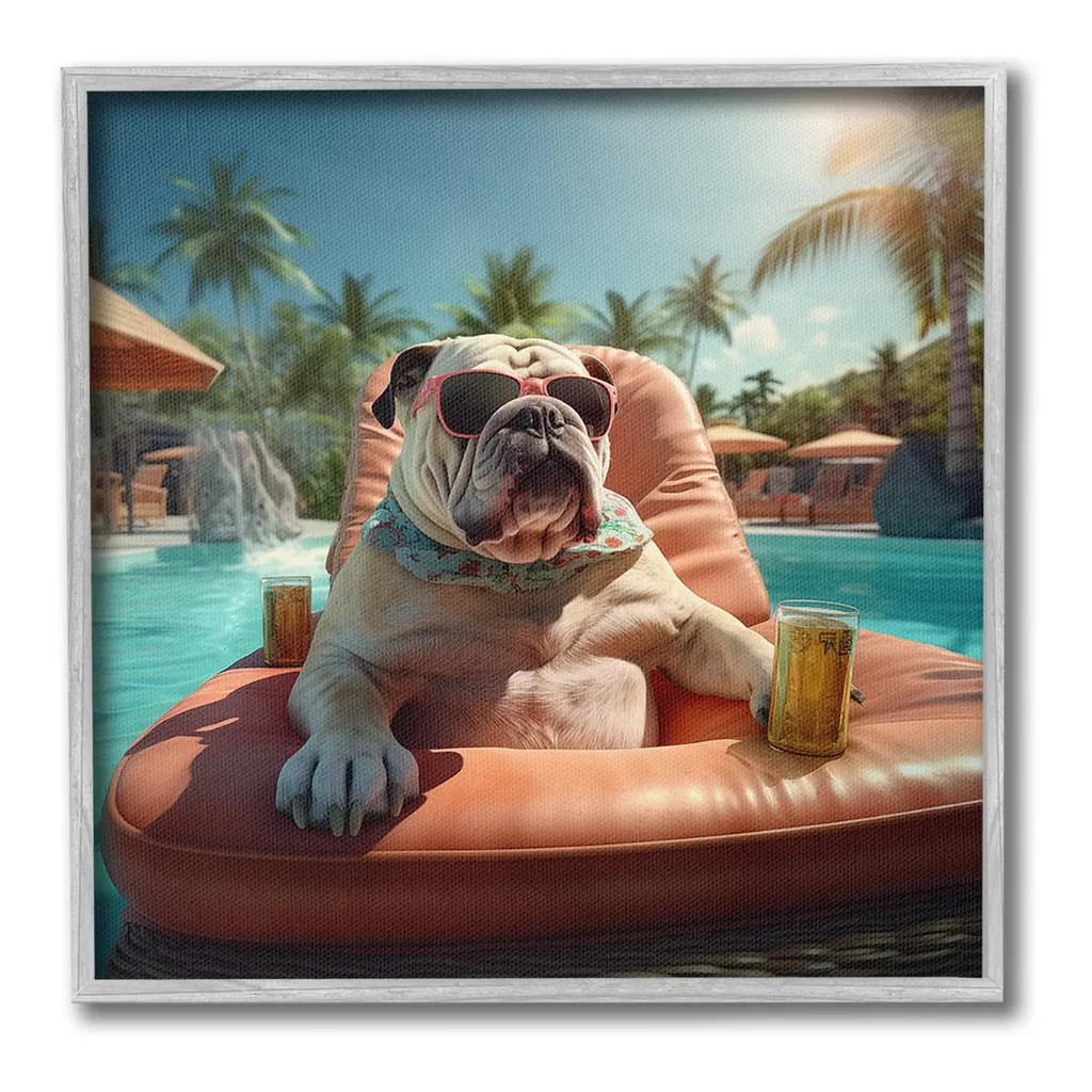 Elevate your home or office to the next level with Stupell Framed Floating Canvas Wall Art. Our premium hand-stretched canvas is mounted securely into a sturdy lightweight frame. The museum-style gap between the wrapped canvas and the box frame gives the illusion of floating artwork. Stupell Wall Art is made in the USA.Features: Dimensions: 18 x 1.7 x 18 Frame, 17 x 1.5 x 17 Canvas ArtFloating Frame Canvas Products are available in sizes 18"x18" and 25"x25". All Floating Frame Canvas Products have a 1.7" Depth.Wall Art is Ready to Hang with Hardware Free Hanging. No Installation required. For Easy Set Up Lean or Layer Artwork on Shelf or Against Wall. Artwork is Permently Fixed into the Frame.Our elevated 1.7" Thick Floating Frame is the perfect complement to our canvas style Wall Art. We use only the highest quality inks in house with industry leading printing solutions. Canvas is hand stretched over a durable wood foundation and then mounted securly into a Modern Box Frame. Made in the USA.Artwork Relates To: Fun, Animal, Canine, Dog, Mammal, Pet, Humor, Funny, Beer, Palm Tree, Pool, Tropical, SummerDesign by Jim Baldwin