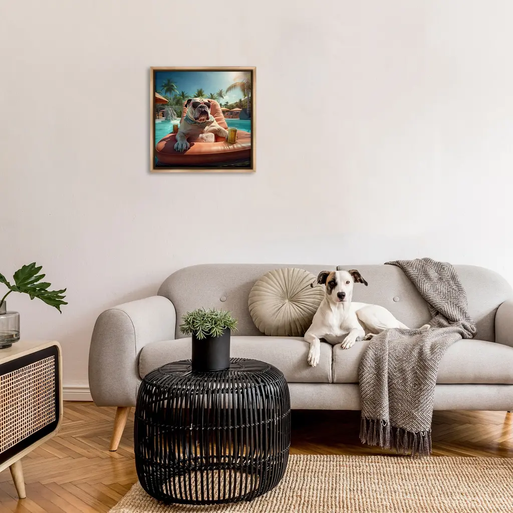 Stupell Bulldog In Resort Pool Framed Floater Canvas Wall Art Design By Jim Baldwin - 25 X 25 - Brown