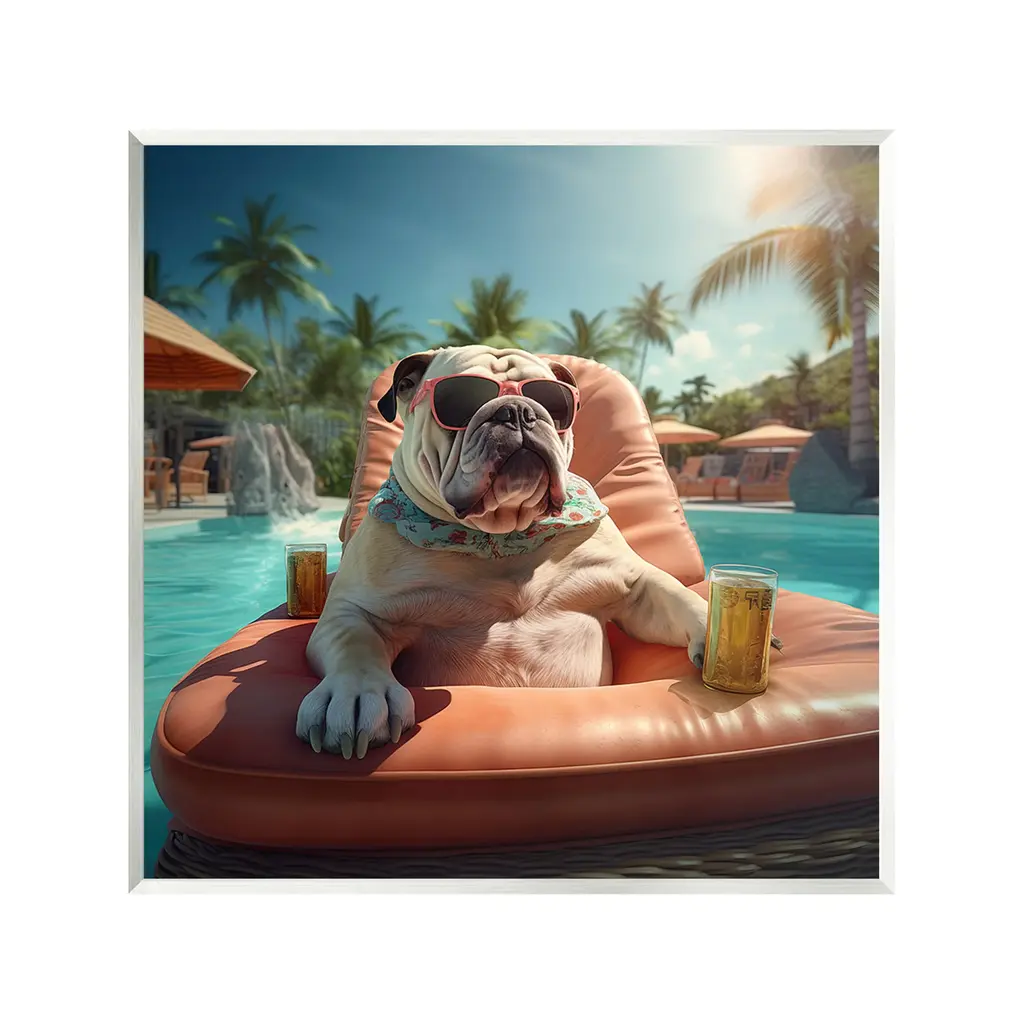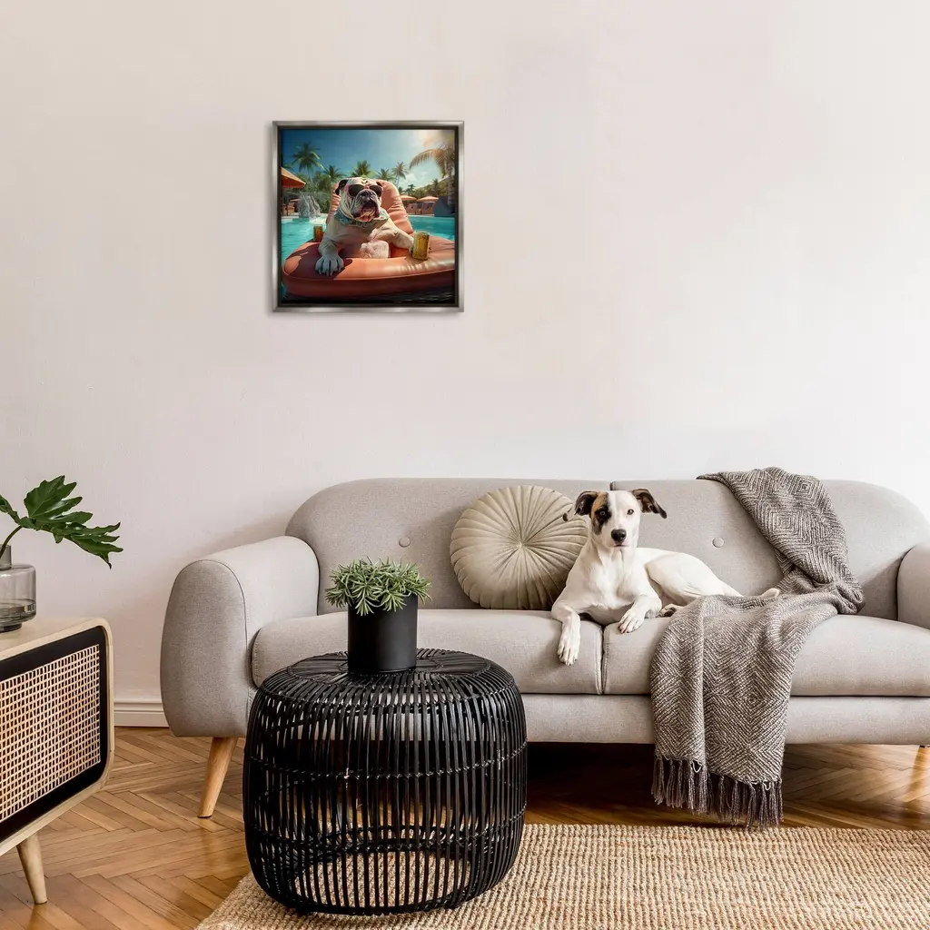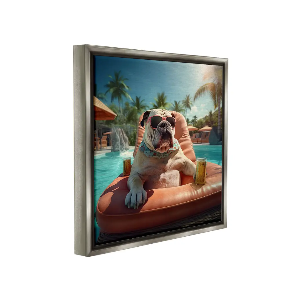 Stupell Bulldog In Resort Pool Framed Floater Canvas Wall Art Design By Jim Baldwin - 25 X 25 - Grey