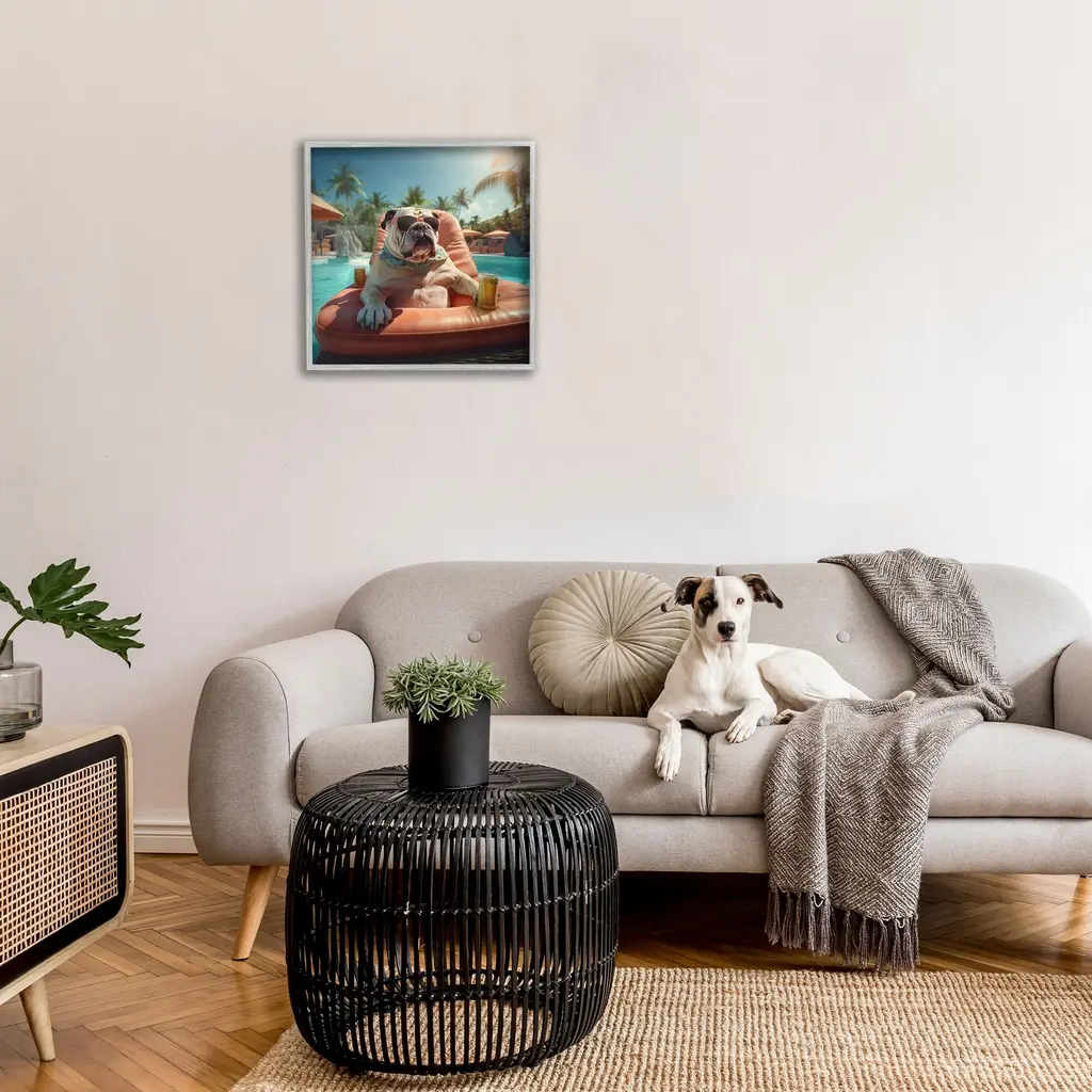 Stupell Bulldog In Resort Pool Framed Giclee Art Design By Jim Baldwin - 24 X 24 - Grey