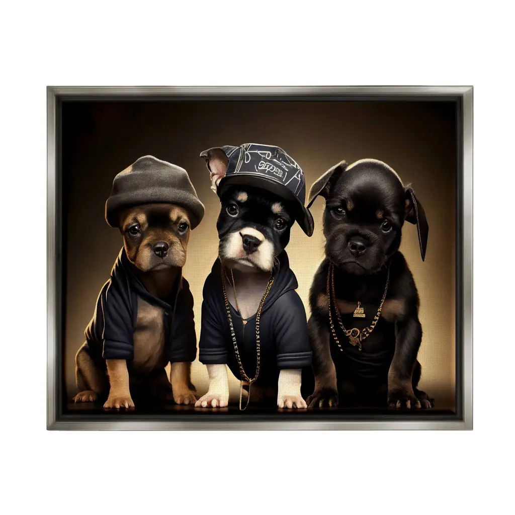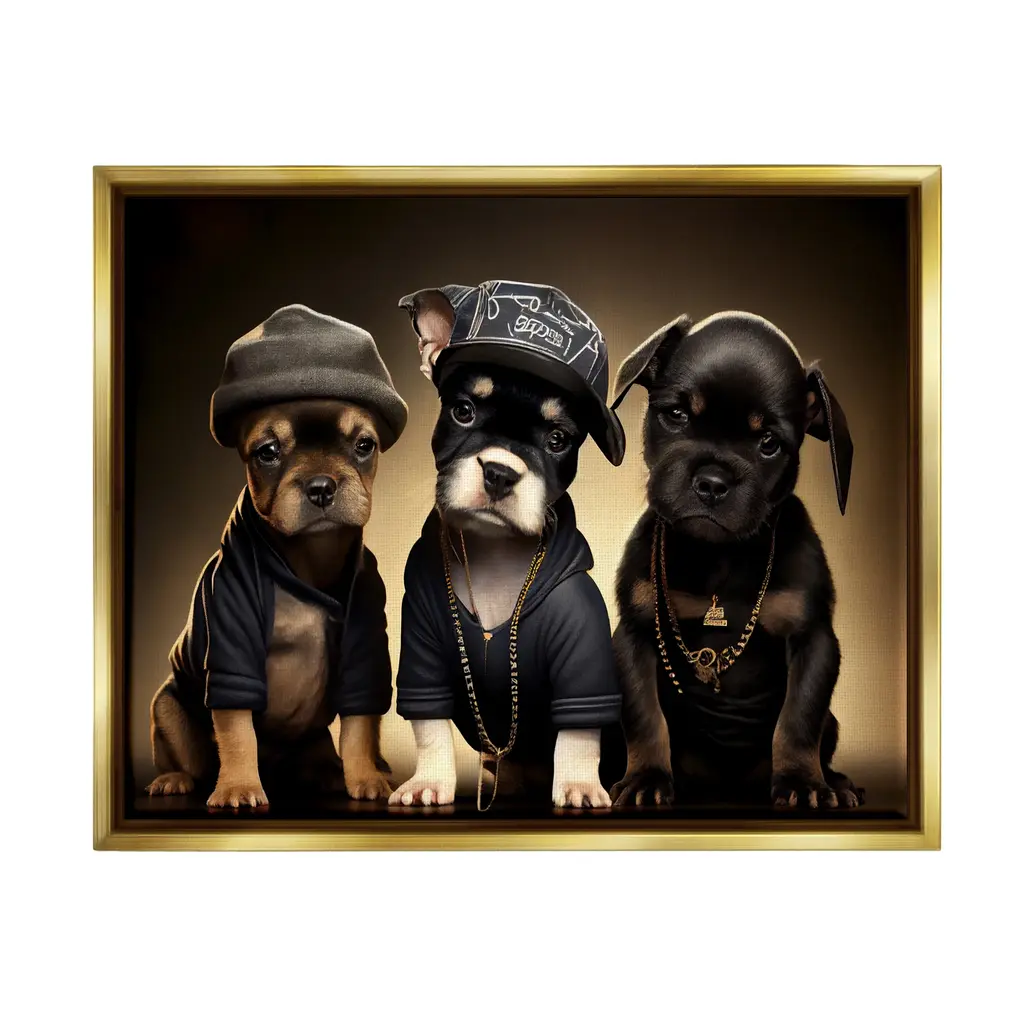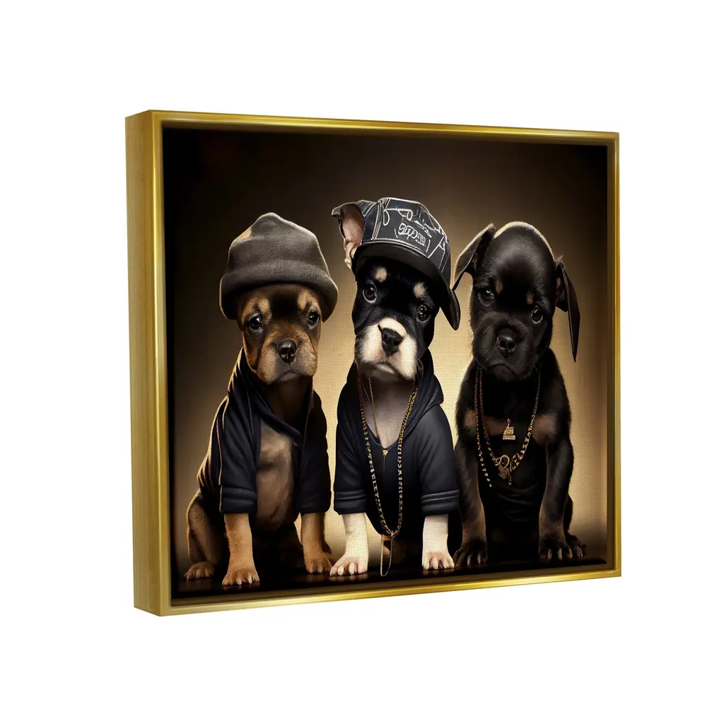 Stupell Bulldog Puppies Urban Outfits Framed Floater Canvas Wall Art By Cybergeek Design - 20 X 16 - Black