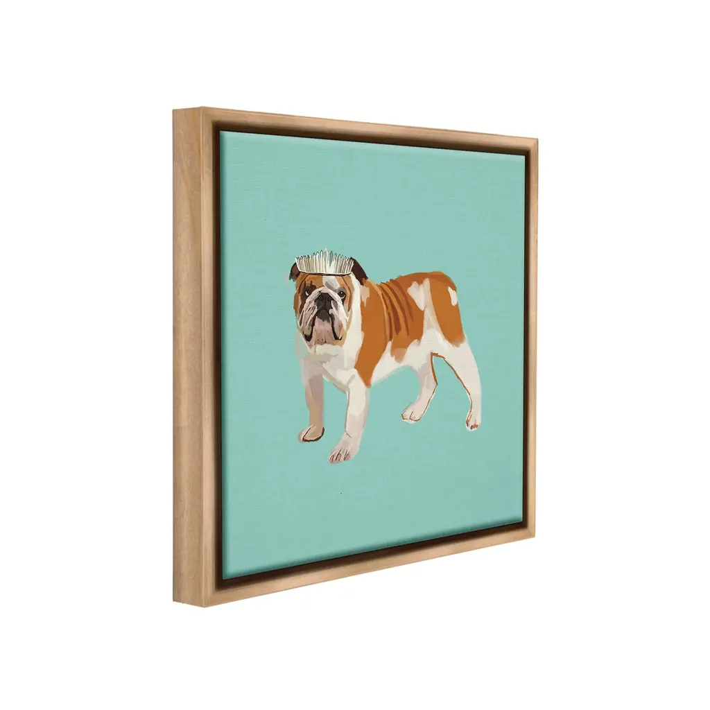 Elevate your home or office to the next level with Stupell Framed Floating Canvas Wall Art. Our premium hand-stretched canvas is mounted securely into a sturdy lightweight frame. The museum-style gap between the wrapped canvas and the box frame gives the illusion of floating artwork. Stupell Wall Art is made in the USA.Features: Dimensions: 18 x 1.7 x 18 Frame, 17 x 1.5 x 17 Canvas ArtFloating Frame Canvas Products are available in sizes 18"x18" and 25"x25". All Floating Frame Canvas Products have a 1.7" Depth.Wall Art is Ready to Hang with Hardware Free Hanging. No Installation required. For Easy Set Up Lean or Layer Artwork on Shelf or Against Wall. Artwork is Permently Fixed into the Frame.Our elevated 1.7" Thick Floating Frame is the perfect complement to our canvas style Wall Art. We use only the highest quality inks in house with industry leading printing solutions. Canvas is hand stretched over a durable wood foundation and then mounted securly into a Modern Box Frame. Made in the USA.Artwork Relates To: Animal, Canine, Dog, Mammal, Pet, Puppy, Tiara, Crown, Princess, BulldogDesign by Amelia Noyes