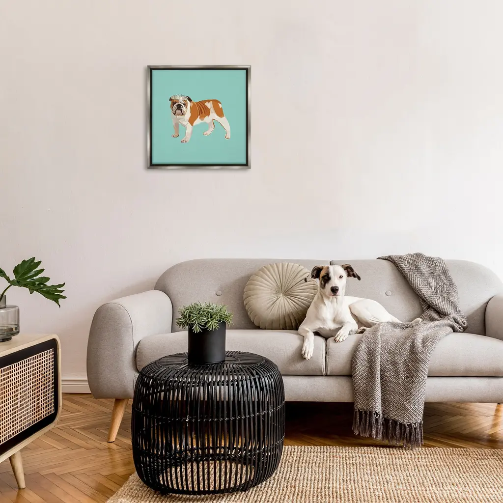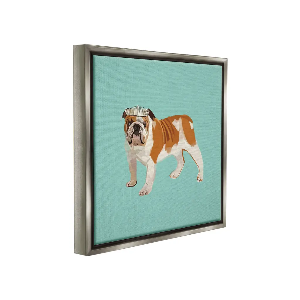 Elevate your home or office to the next level with Stupell Framed Floating Canvas Wall Art. Our premium hand-stretched canvas is mounted securely into a sturdy lightweight frame. The museum-style gap between the wrapped canvas and the box frame gives the illusion of floating artwork. Stupell Wall Art is made in the USA.Features: Dimensions: 18 x 1.7 x 18 Frame, 17 x 1.5 x 17 Canvas ArtFloating Frame Canvas Products are available in sizes 18"x18" and 25"x25". All Floating Frame Canvas Products have a 1.7" Depth.Wall Art is Ready to Hang with Hardware Free Hanging. No Installation required. For Easy Set Up Lean or Layer Artwork on Shelf or Against Wall. Artwork is Permently Fixed into the Frame.Our elevated 1.7" Thick Floating Frame is the perfect complement to our canvas style Wall Art. We use only the highest quality inks in house with industry leading printing solutions. Canvas is hand stretched over a durable wood foundation and then mounted securly into a Modern Box Frame. Made in the USA.Artwork Relates To: Animal, Canine, Dog, Mammal, Pet, Puppy, Tiara, Crown, Princess, BulldogDesign by Amelia Noyes