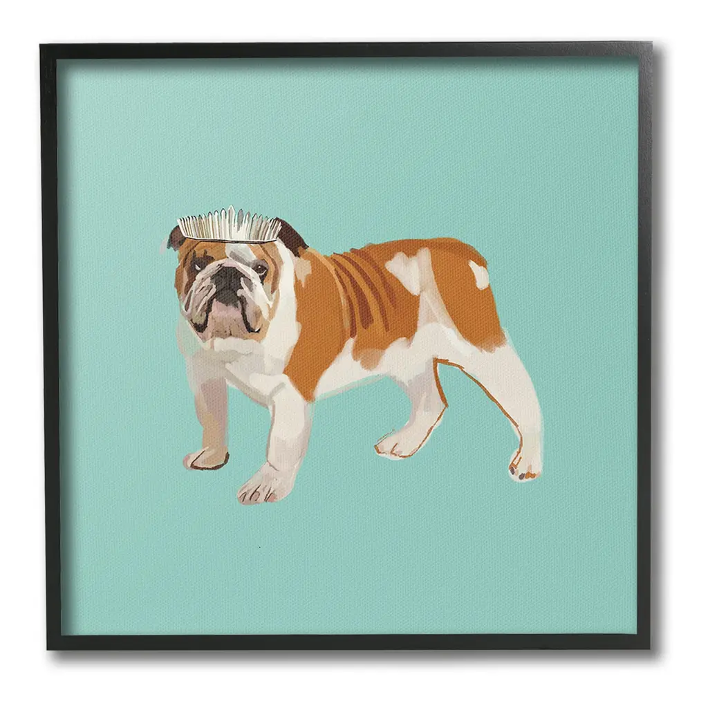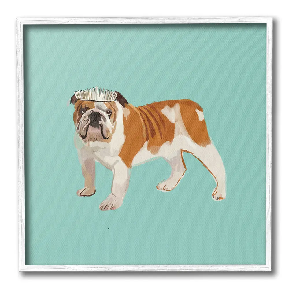 Add dimension to any room with our textured Framed Giclee Artwork. Our framed artwork is securely mounted into a 1.5-inch thick wood grain frame and ready to hang. Frames are available in three alluring styles: black, gray farmhouse and white. In addition, you should check out our oversized options if you want a statement piece. Stupell Wall Art is made in the USA.Features: Dimensions: 12 x 1.5 x 12 FramedFramed Giclee Product Sizes Include 12"x12", 17"x17", and 24"x24". Framed Giclee Products have a 1.5" Depth. Wall Art is Ready to Hang with Hardware Free Hanging. No installation required. For Easy Set Up Lean or Layer Artwork on Shelf or Against Wall.Our giclée prints are carefully mounted on a durable MDF backing, and then perfectly finished in a 1.5 inch thick woodgrain frame. Mounted frame colors include black, gray farmhouse and white. Made In USA.Artwork Relates To: Animal, Canine, Dog, Mammal, Pet, Puppy, Tiara, Crown, Princess, BulldogDesign by Amelia Noyes