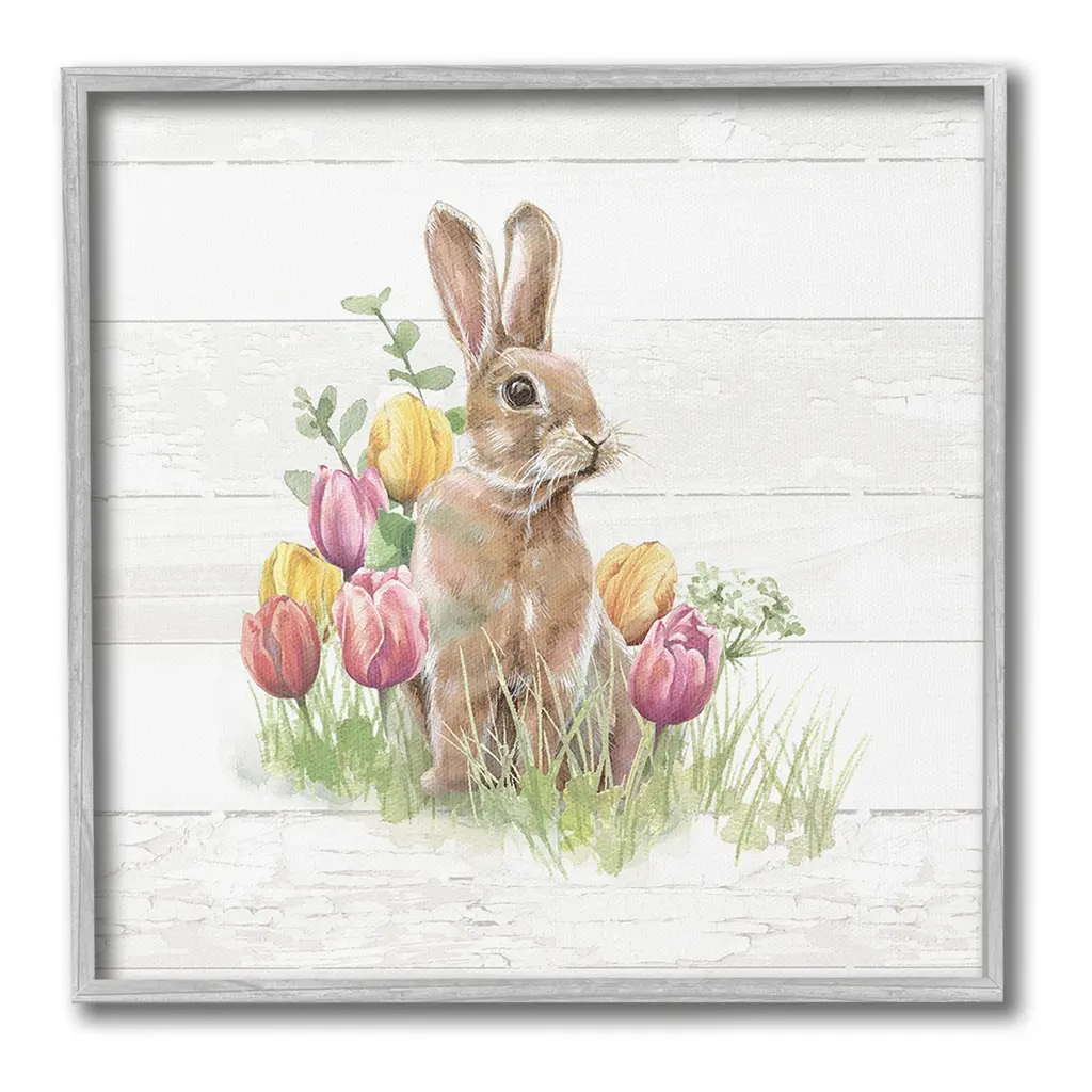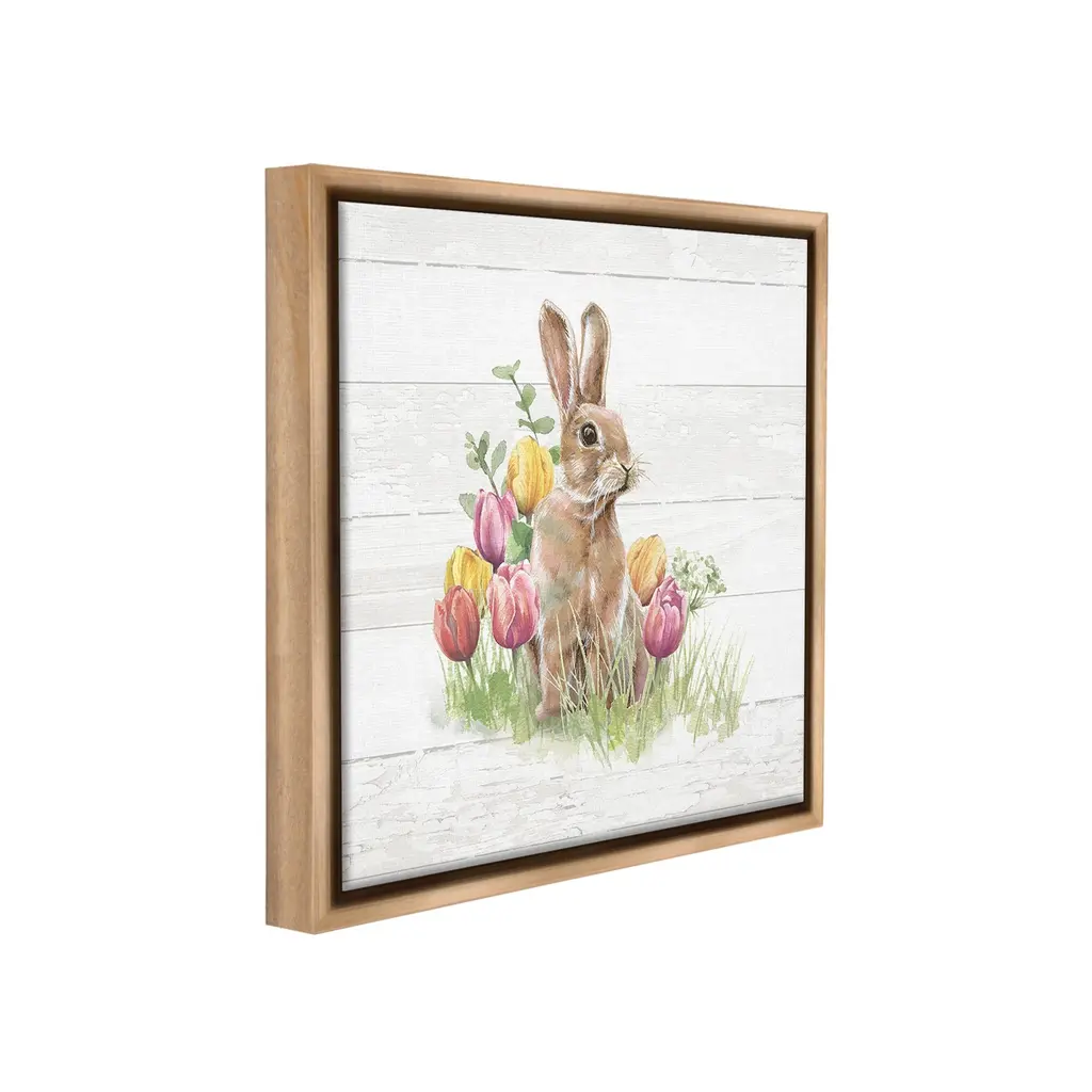 Elevate your home or office to the next level with Stupell Framed Floating Canvas Wall Art. Our premium hand-stretched canvas is mounted securely into a sturdy lightweight frame. The museum-style gap between the wrapped canvas and the box frame gives the illusion of floating artwork. Stupell Wall Art is made in the USA.Features: Dimensions: 18 x 1.7 x 18 Frame, 17 x 1.5 x 17 Canvas ArtFloating Frame Canvas Products are available in sizes 18"x18" and 25"x25". All Floating Frame Canvas Products have a 1.7" Depth.Wall Art is Ready to Hang with Hardware Free Hanging. No Installation required. For Easy Set Up Lean or Layer Artwork on Shelf or Against Wall. Artwork is Permently Fixed into the Frame.Our elevated 1.7" Thick Floating Frame is the perfect complement to our canvas style Wall Art. We use only the highest quality inks in house with industry leading printing solutions. Canvas is hand stretched over a durable wood foundation and then mounted securly into a Modern Box Frame. Made in the USA.Artwork Relates To: Animal, Hare, Mammal, Pet, Rabbit, Bunny, Flower, Plant, Floral, Rustic, Country, TulipDesign by Courtney Morgenstern