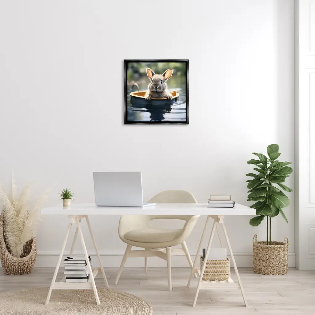 Elevate your home or office to the next level with Stupell Framed Floating Canvas Wall Art. Our premium hand-stretched canvas is mounted securely into a sturdy lightweight frame. The museum-style gap between the wrapped canvas and the box frame gives the illusion of floating artwork. Stupell Wall Art is made in the USA.Features: Dimensions: 18 x 1.7 x 18 Frame, 17 x 1.5 x 17 Canvas ArtFloating Frame Canvas Products are available in sizes 18"x18" and 25"x25". All Floating Frame Canvas Products have a 1.7" Depth.Wall Art is Ready to Hang with Hardware Free Hanging. No Installation required. For Easy Set Up Lean or Layer Artwork on Shelf or Against Wall. Artwork is Permently Fixed into the Frame.Our elevated 1.7" Thick Floating Frame is the perfect complement to our canvas style Wall Art. We use only the highest quality inks in house with industry leading printing solutions. Canvas is hand stretched over a durable wood foundation and then mounted securly into a Modern Box Frame. Made in the USA.Artwork Relates To: Animal, Mammal, Rabbit, Bathing, Pet, Bunny, Pond, Water, GardenDesign by RB