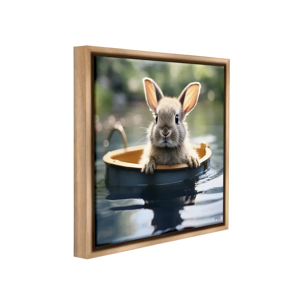 Elevate your home or office to the next level with Stupell Framed Floating Canvas Wall Art. Our premium hand-stretched canvas is mounted securely into a sturdy lightweight frame. The museum-style gap between the wrapped canvas and the box frame gives the illusion of floating artwork. Stupell Wall Art is made in the USA.Features: Dimensions: 18 x 1.7 x 18 Frame, 17 x 1.5 x 17 Canvas ArtFloating Frame Canvas Products are available in sizes 18"x18" and 25"x25". All Floating Frame Canvas Products have a 1.7" Depth.Wall Art is Ready to Hang with Hardware Free Hanging. No Installation required. For Easy Set Up Lean or Layer Artwork on Shelf or Against Wall. Artwork is Permently Fixed into the Frame.Our elevated 1.7" Thick Floating Frame is the perfect complement to our canvas style Wall Art. We use only the highest quality inks in house with industry leading printing solutions. Canvas is hand stretched over a durable wood foundation and then mounted securly into a Modern Box Frame. Made in the USA.Artwork Relates To: Animal, Mammal, Rabbit, Bathing, Pet, Bunny, Pond, Water, GardenDesign by RB