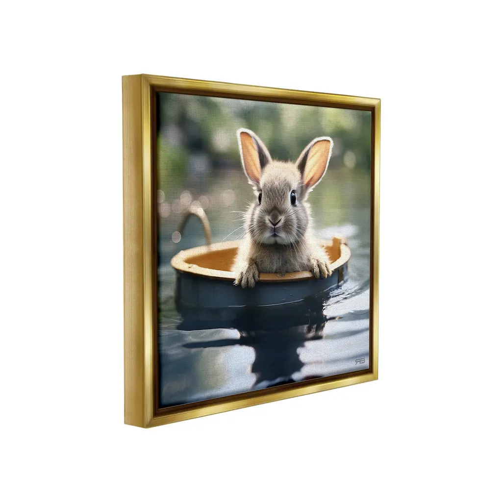 Elevate your home or office to the next level with Stupell Framed Floating Canvas Wall Art. Our premium hand-stretched canvas is mounted securely into a sturdy lightweight frame. The museum-style gap between the wrapped canvas and the box frame gives the illusion of floating artwork. Stupell Wall Art is made in the USA.Features: Dimensions: 18 x 1.7 x 18 Frame, 17 x 1.5 x 17 Canvas ArtFloating Frame Canvas Products are available in sizes 18"x18" and 25"x25". All Floating Frame Canvas Products have a 1.7" Depth.Wall Art is Ready to Hang with Hardware Free Hanging. No Installation required. For Easy Set Up Lean or Layer Artwork on Shelf or Against Wall. Artwork is Permently Fixed into the Frame.Our elevated 1.7" Thick Floating Frame is the perfect complement to our canvas style Wall Art. We use only the highest quality inks in house with industry leading printing solutions. Canvas is hand stretched over a durable wood foundation and then mounted securly into a Modern Box Frame. Made in the USA.Artwork Relates To: Animal, Mammal, Rabbit, Bathing, Pet, Bunny, Pond, Water, GardenDesign by RB