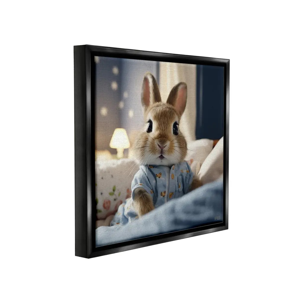 Stupell Bunny In Pajamas Framed Floater Canvas Wall Art Design By Rb - 18 X 18 - Black
