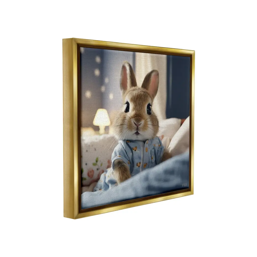 Stupell Bunny In Pajamas Framed Floater Canvas Wall Art Design By Rb - 25 X 25 - Gold