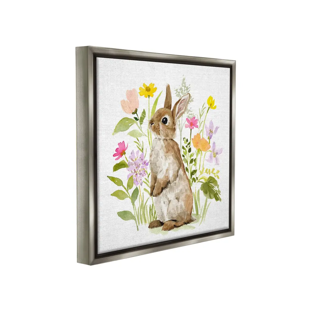 Elevate your home or office to the next level with Stupell Framed Floating Canvas Wall Art. Our premium hand-stretched canvas is mounted securely into a sturdy lightweight frame. The museum-style gap between the wrapped canvas and the box frame gives the illusion of floating artwork. Stupell Wall Art is made in the USA.Features: Dimensions: 18 x 1.7 x 18 Frame, 17 x 1.5 x 17 Canvas ArtFloating Frame Canvas Products are available in sizes 18"x18" and 25"x25". All Floating Frame Canvas Products have a 1.7" Depth.Wall Art is Ready to Hang with Hardware Free Hanging. No Installation required. For Easy Set Up Lean or Layer Artwork on Shelf or Against Wall. Artwork is Permently Fixed into the Frame.Our elevated 1.7" Thick Floating Frame is the perfect complement to our canvas style Wall Art. We use only the highest quality inks in house with industry leading printing solutions. Canvas is hand stretched over a durable wood foundation and then mounted securly into a Modern Box Frame. Made in the USA.Artwork Relates To: Animal, Mammal, Rabbit, Flower, Bunny, Spring, Floral, NatureDesign by Victoria Barnes
