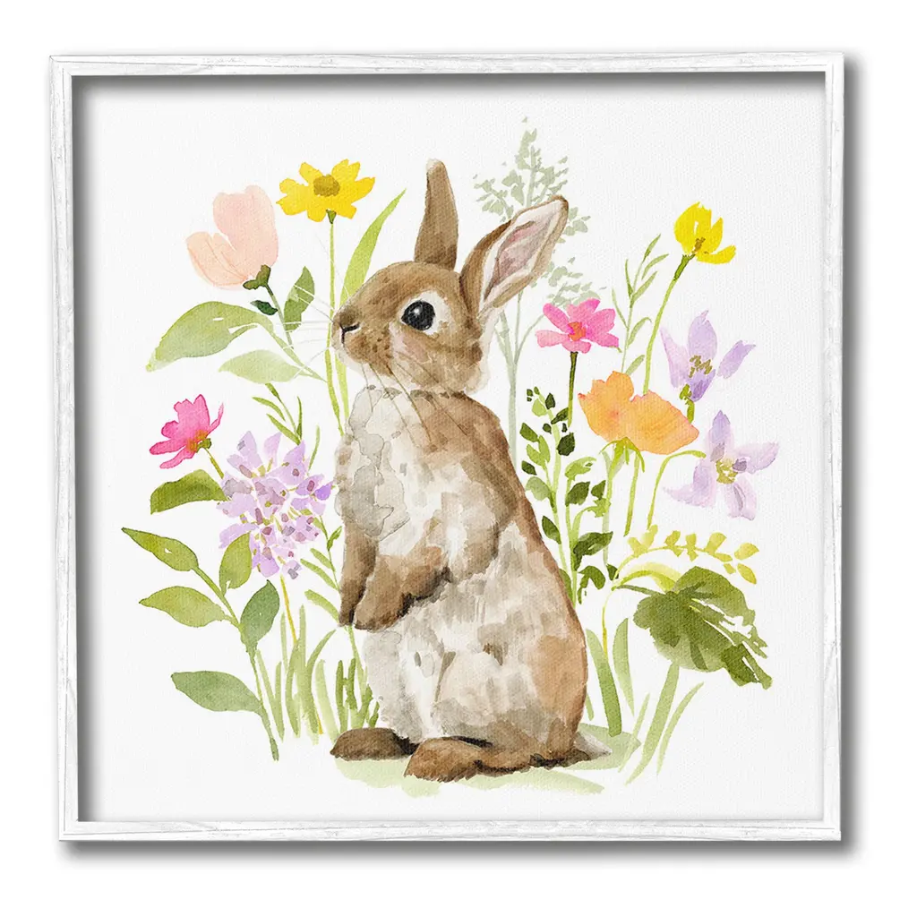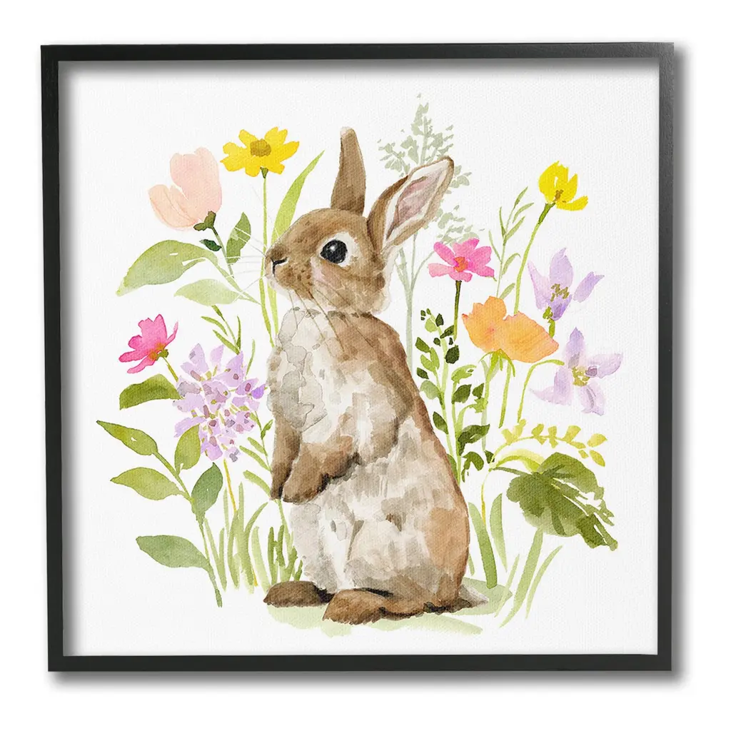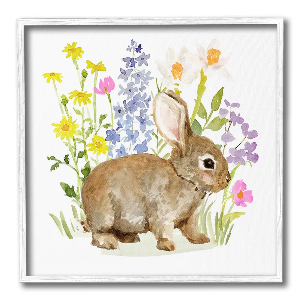 Add dimension to any room with our textured Framed Giclee Artwork. Our framed artwork is securely mounted into a 1.5-inch thick wood grain frame and ready to hang. Frames are available in three alluring styles: black, gray farmhouse and white. In addition, you should check out our oversized options if you want a statement piece. Stupell Wall Art is made in the USA.Features: Dimensions: 12 x 1.5 x 12 FramedFramed Giclee Product Sizes Include 12"x12", 17"x17", and 24"x24". Framed Giclee Products have a 1.5" Depth. Wall Art is Ready to Hang with Hardware Free Hanging. No installation required. For Easy Set Up Lean or Layer Artwork on Shelf or Against Wall.Our giclée prints are carefully mounted on a durable MDF backing, and then perfectly finished in a 1.5 inch thick woodgrain frame. Mounted frame colors include black, gray farmhouse and white. Made In USA.Artwork Relates To: Animal, Mammal, Rabbit, Flower, Bunny, Spring, Floral, NatureDesign by Victoria Barnes