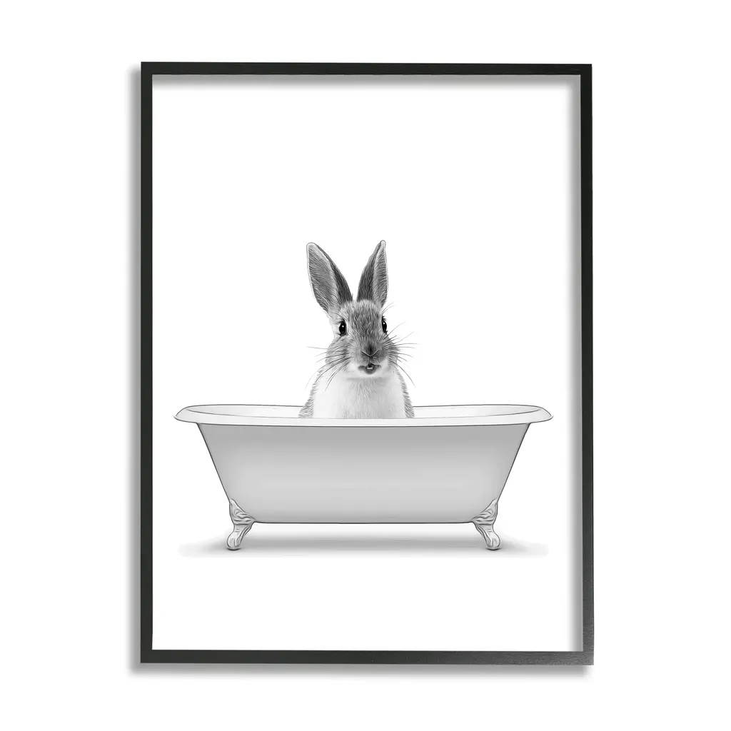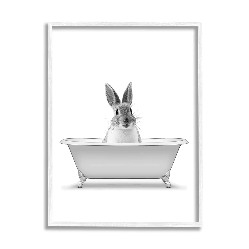 Add dimension to any room with our textured Framed Giclee Artwork. Our framed artwork is securely mounted into a 1.5-inch thick wood grain frame and ready to hang. Frames are available in three alluring styles: black, gray farmhouse and white. In addition, you should check out our oversized options if you want a statement piece. Stupell Wall Art is made in the USA.Features: Dimensions: 11 x 1.5 x 14 FramedFramed Giclee Sizes Include Standard: 11 x 1.5 x 14 Large: 16 x 1.5 x 20 Oversized: 24 x 1.5 x 30Wall Art is Ready to Hang - No Installation or Hardware Needed. For Easy Set Up Lean or Layer Artwork on Shelf or Against Wall.Our giclée prints are carefully mounted on a durable MDF backing, and then perfectly finished in a 1.5 inch thick woodgrain frame. Mounted frame colors include black, gray farmhouse and white. Made In USA.Artwork Relates To: Animal, Mammal, Wildlife, Bathroom, Bunny, RabbitDesign by Annalisa Latella