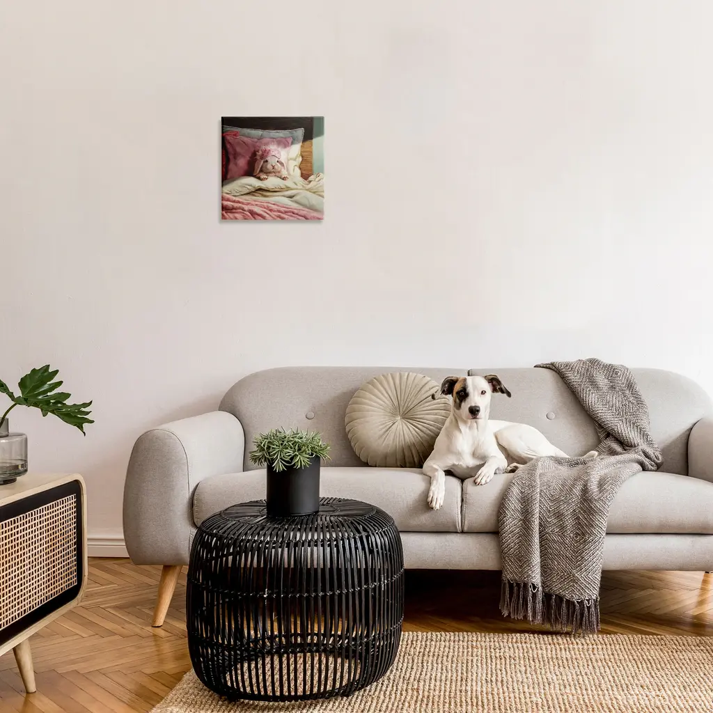 Stupell Bunny Rabbit Resting In Bed Off-White Pink Canvas Wall Art - 17 X 17