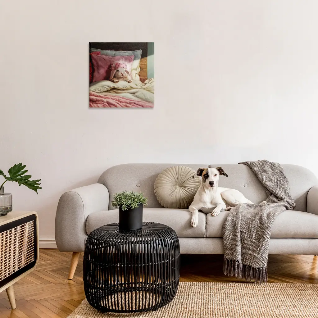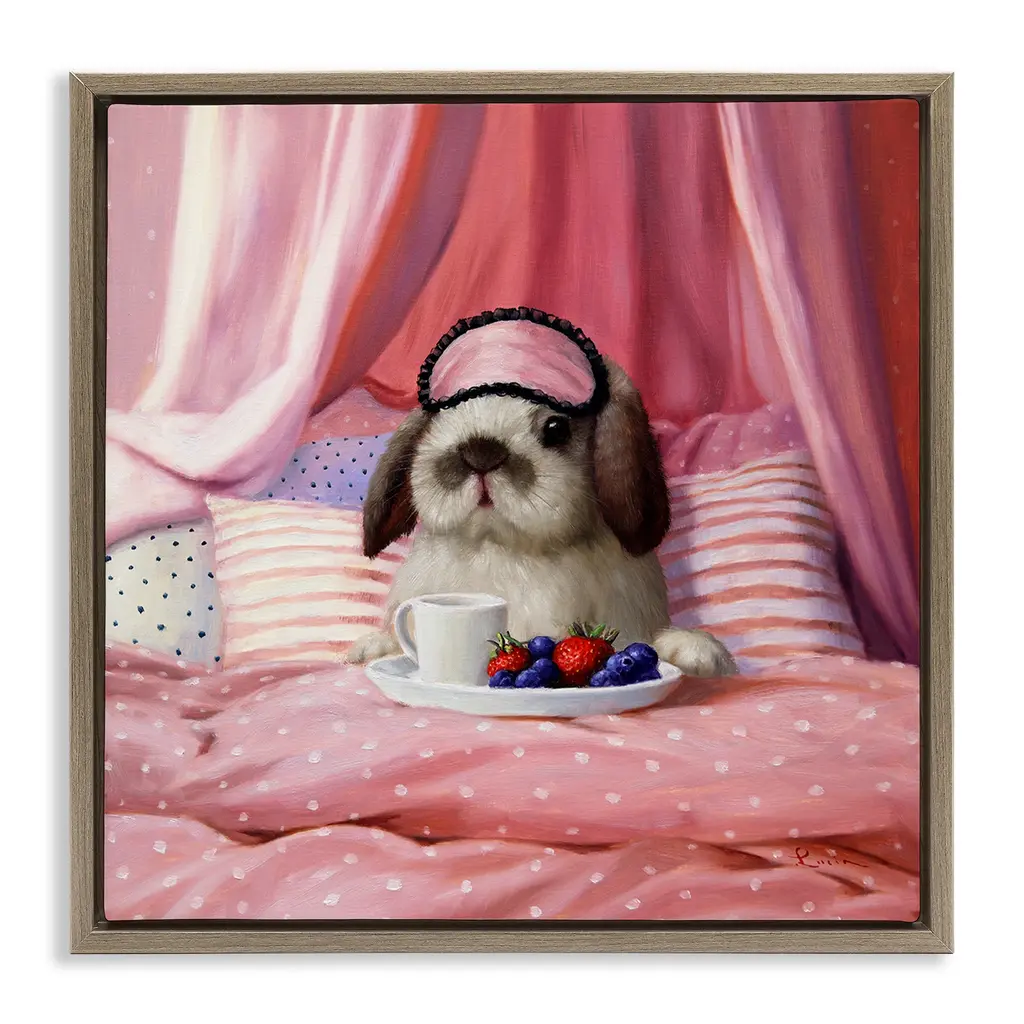 Stupell Bunny Rabbit Resting In Bed Off-White Pink Canvas Wall Art - 24 X 24