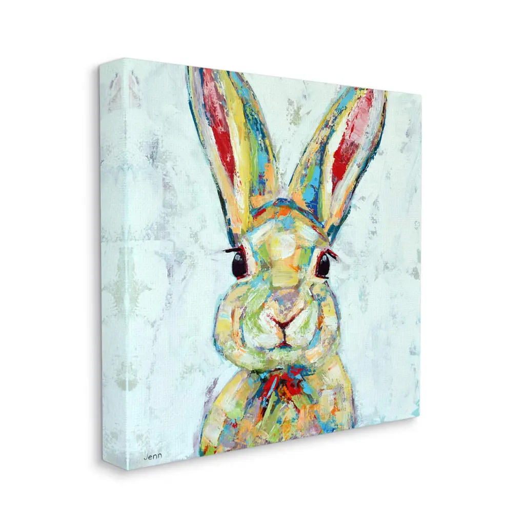 Proudly made in the USA, Our stretched canvas is created with the highest standards. We use only the highest quality inks and canvas on our in house Mimaki printers, and then hand cut and stretch each piece over a 1.5 inch thick wooden frame for hanging. The art comes ready to hang with no installation required.Features: Dimensions: 17 x 1.5 x 17 InchesStretched Canvas Sizes Include Standard: 17 x 1.5 x 17 Large: 24 x 1.5 x 24 X-Large: 30 x 1.5 x 30 Oversized: 36 x 1.5 x 36Wall Art is Ready to Hang - No Installation or Hardware Needed. For Easy Set Up Lean or Layer Artwork on Shelf or Against Wall.Our stretched canvas is created with the highest standards. We use only the highest quality inks and canvas on our in house Mimaki printers, and then hand cut and stretch each piece over a 1.5 inch thick wooden frame for hanging. Made In USA.Artwork Relates To: Animal, Mammal, Wildlife, Painting, Modern, Urban, Street Style, Painting, Rabbit, BunnyDesign by Jen Seeley