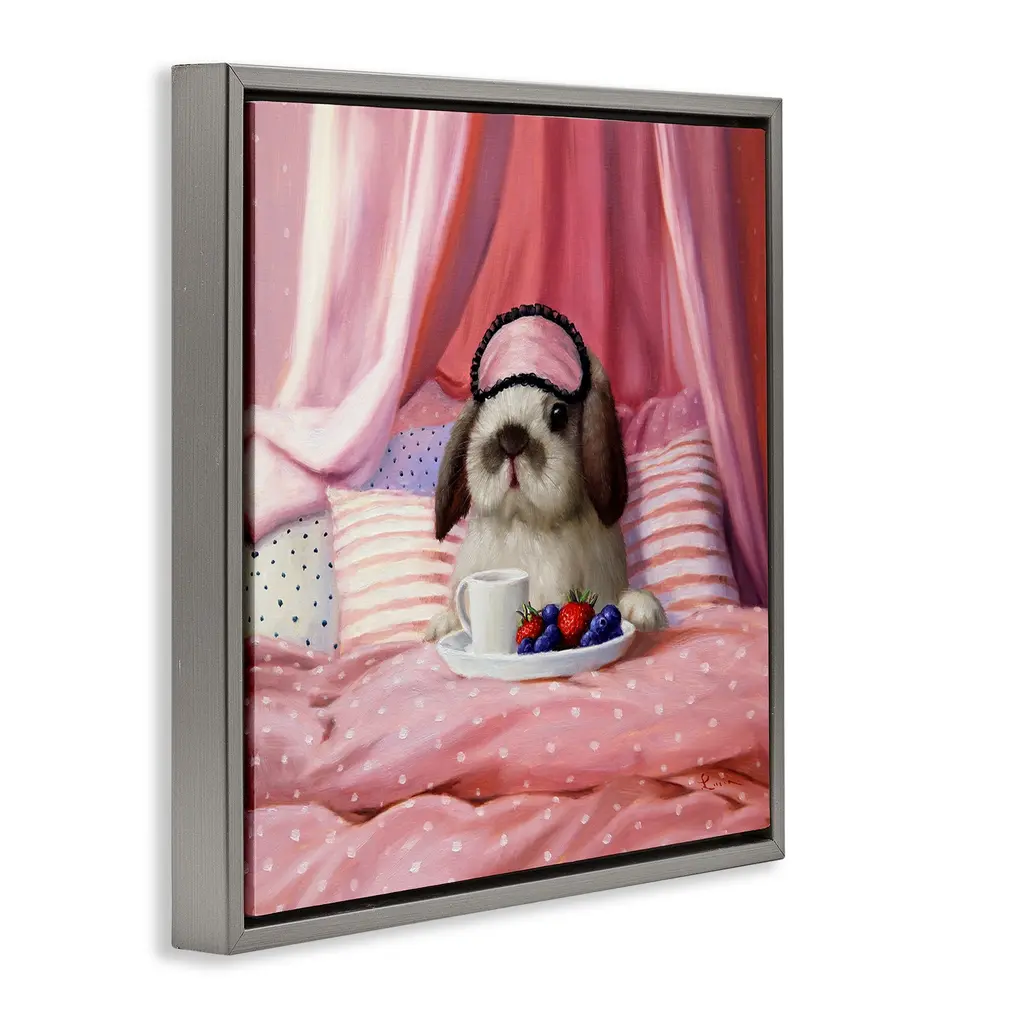 Stupell Bunny With Breakfast In Bed Framed Floater Canvas Wall Art Design By Lucia Heffernan - 18 X 18 - Grey